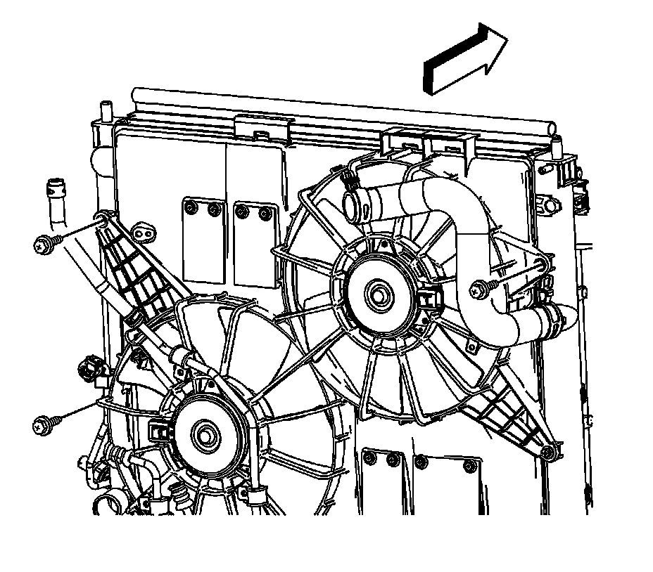 2. Disengage the surge tank inlet hose from the retaining features on the cooling fan shroud and reposition aside.