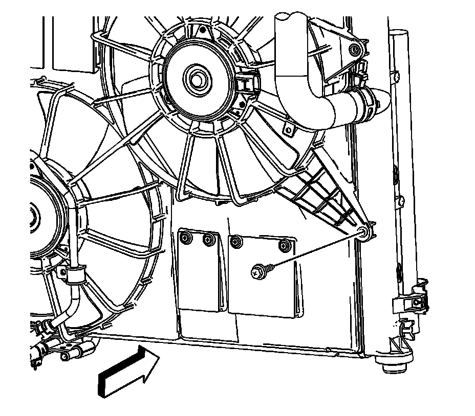 12. Install the left side lower retaining bolt that secures the cooling fan shroud to the radiator and tighten to 5.4 Nm (48 lb in).