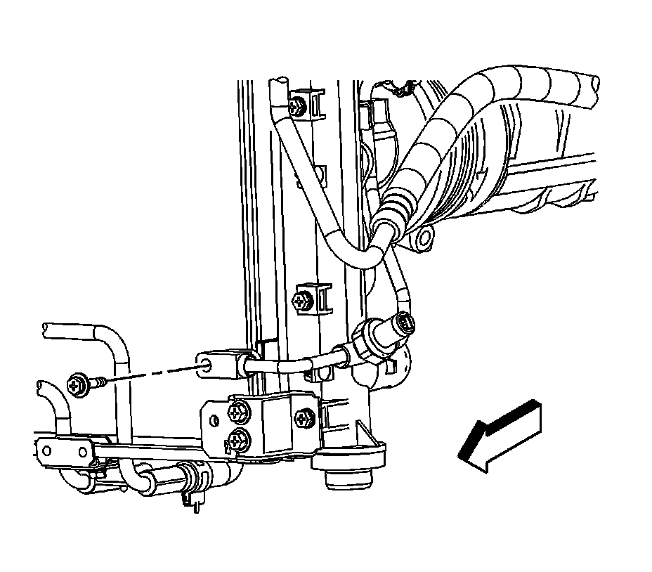 16. Install the power steering cooler mounting bolts. Refer to Power Steering Fluid Cooler Replacement (LH2 or LY7 with V92) ()Power Steering Fluid Cooler Replacement (LY7 without V92) ().