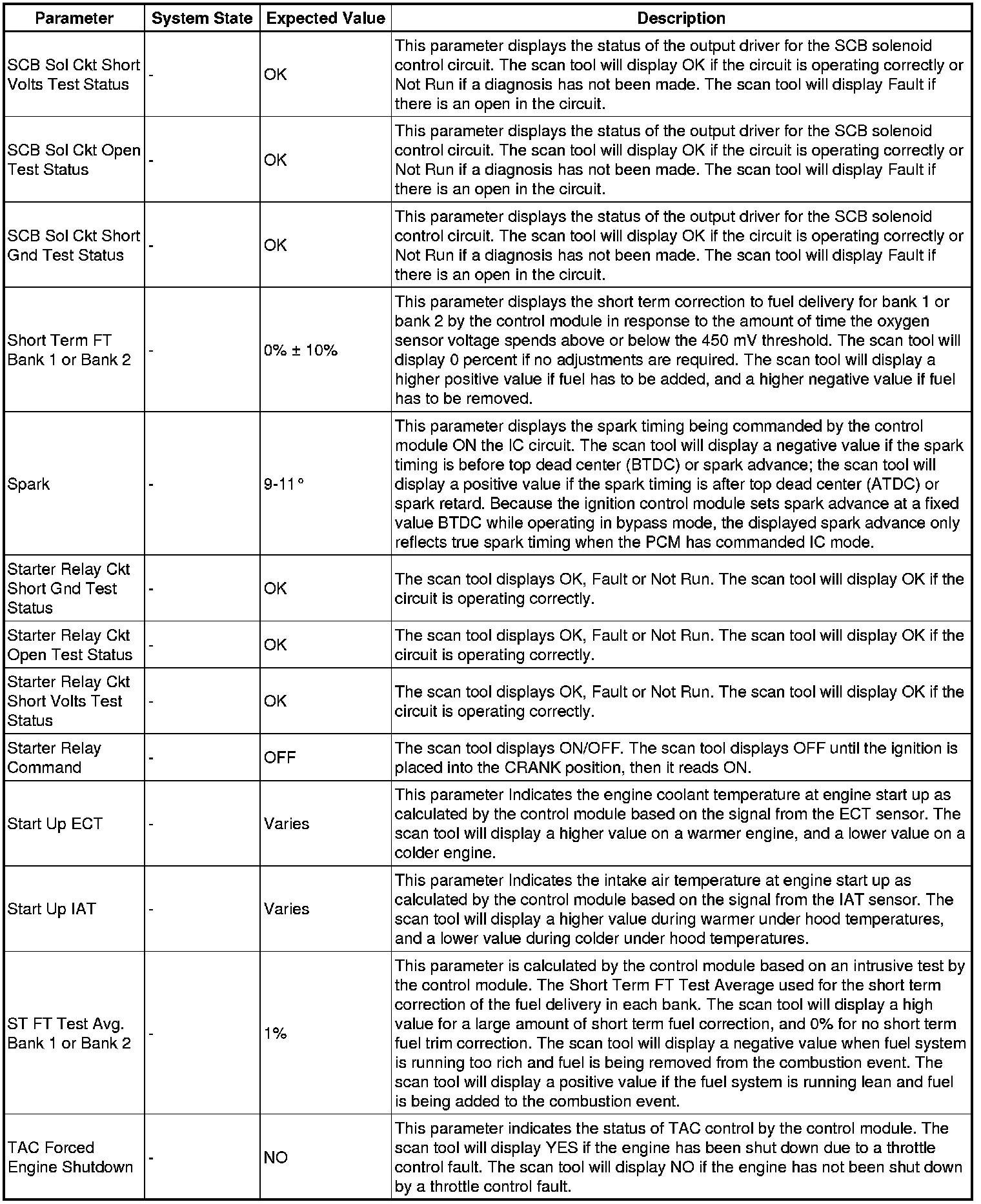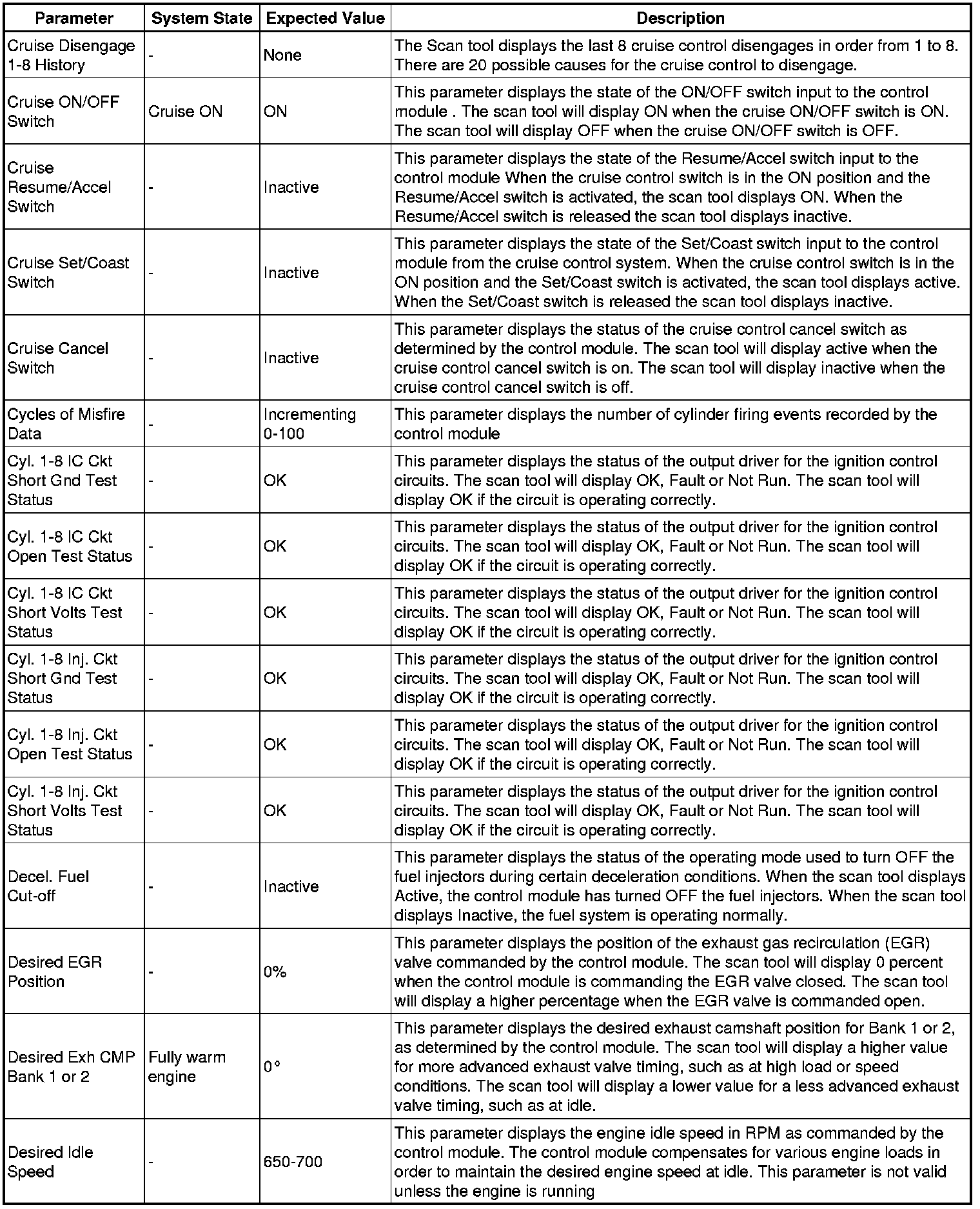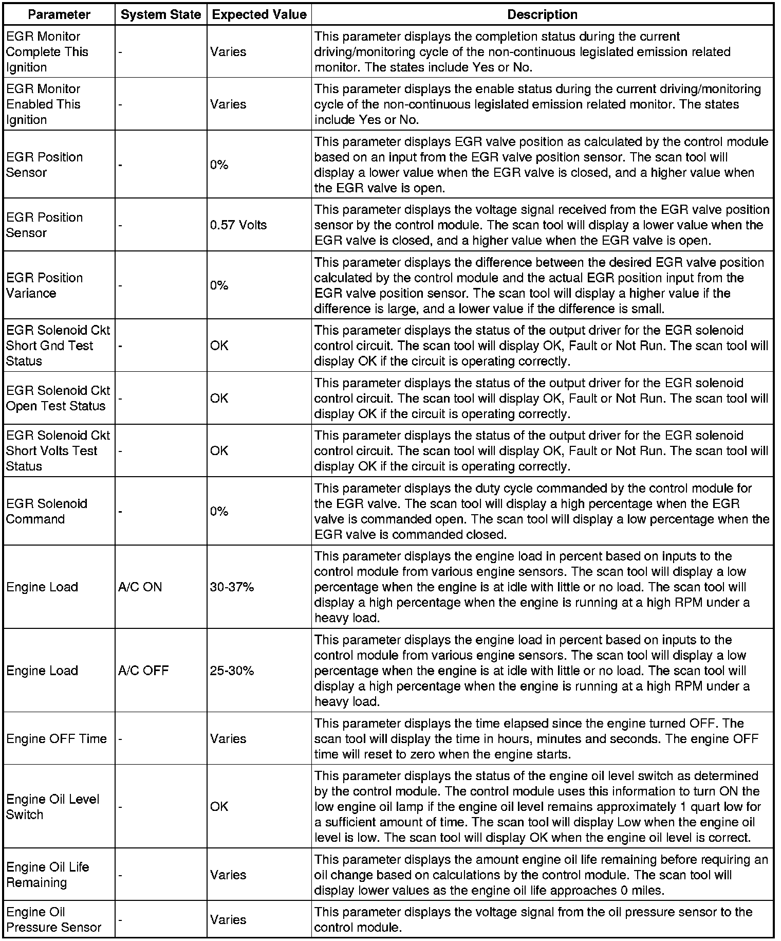 The Engine Control Module Scan Tool Data List contains all engine-related parameters that are available on the scan tool. The list is arranged in alphabetical order. A given parameter may appear in any one of the data lists, and in some cases may appear more than once, or in more than one data list in order to group certain related parameters together.