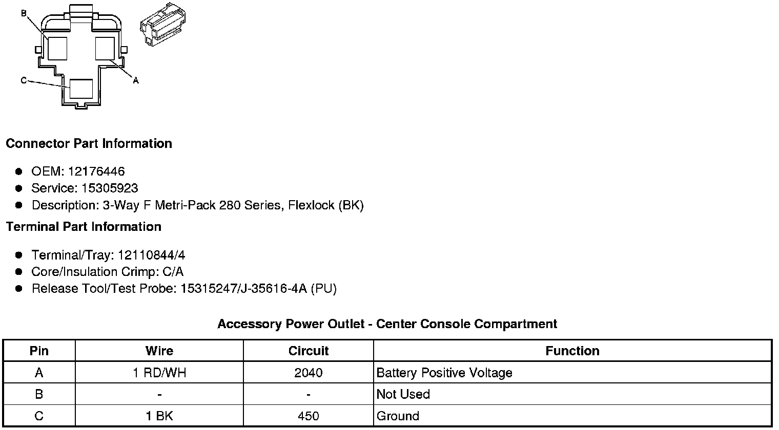 Accessory Power Outlet - Center Console (without DT4)