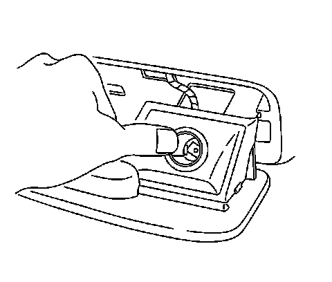 3. Remove the cigar lighter socket by placing one side of the T portion of the tool J 42059 into the tab window and then the other should be angled into the opposite tab window, then pull the lighter socket straight out.