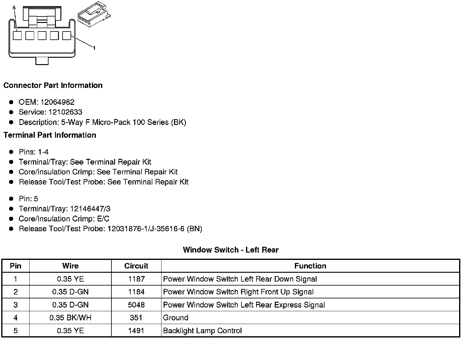 Window Switch - Left Rear