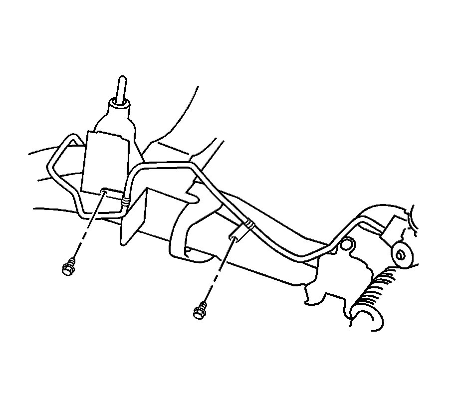 6. Install the power steering gear outlet hose to frame retaining bolts and tighten to 10 Nm (88 lb in).