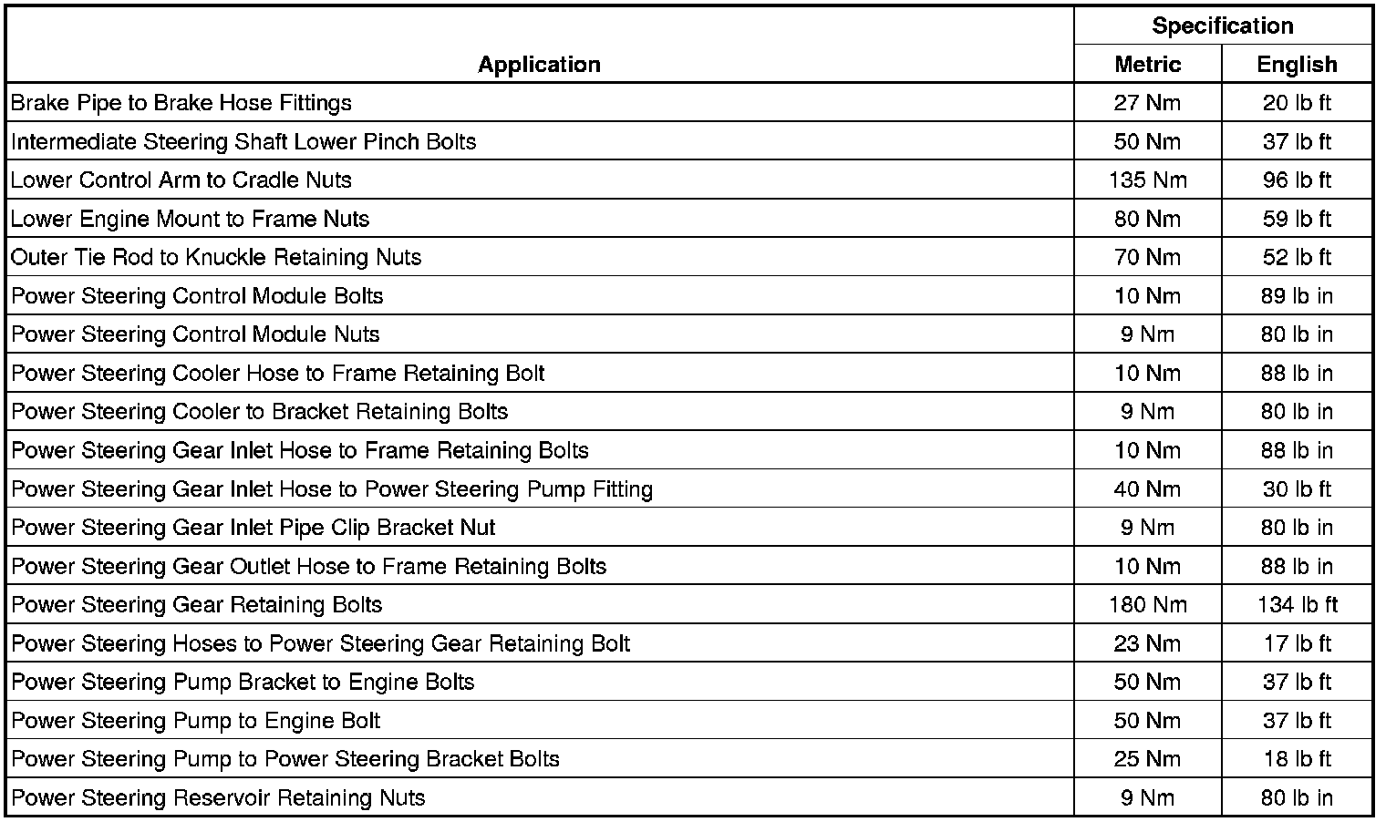 Fastener Tightening Specifications