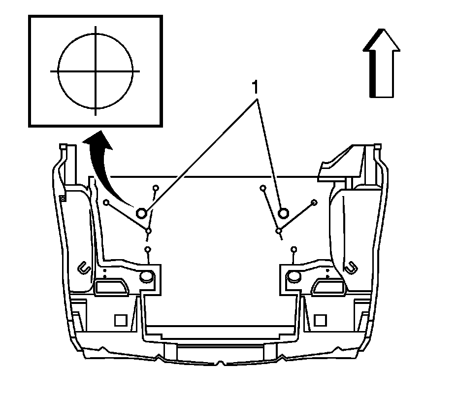 3.Locate the scribed marks labeled XMBR BOLT (1) in the floor of the rear compartment panel which identifies the area directly over the bolt.