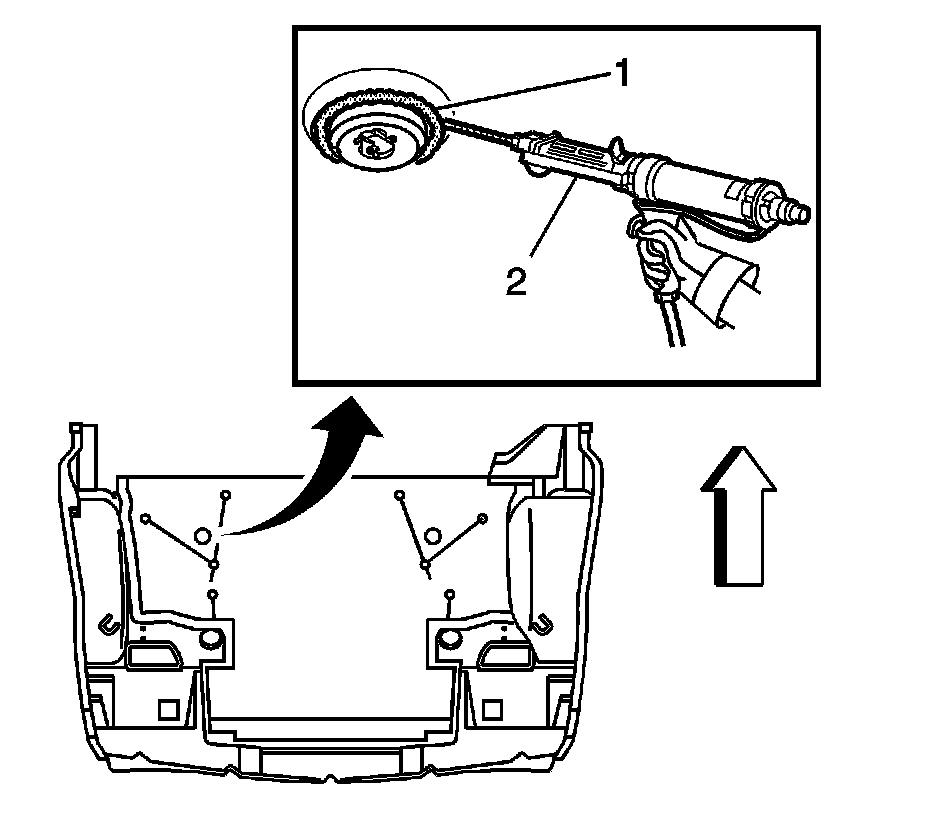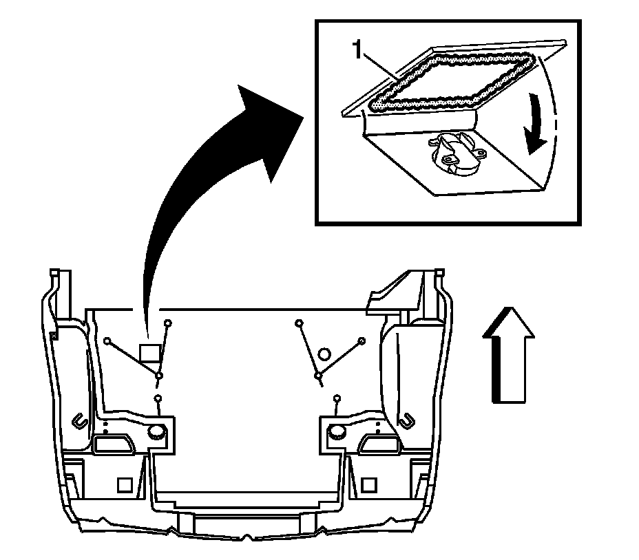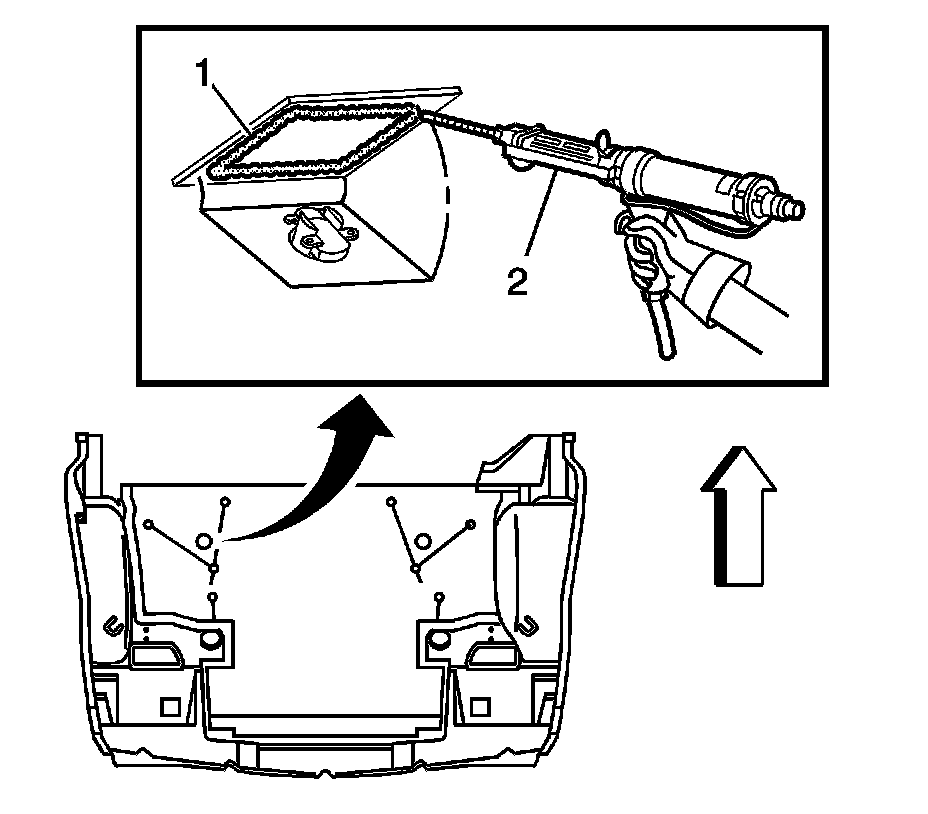8.Apply a 6 mm (1/4 in) bead of adhesive (2) GM P/N 89020330 (Canadian P/N 8902332) around the perimeter of the cover.