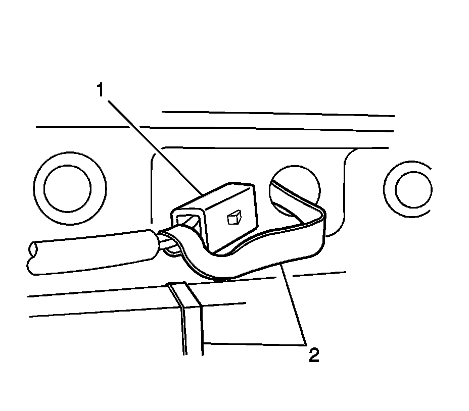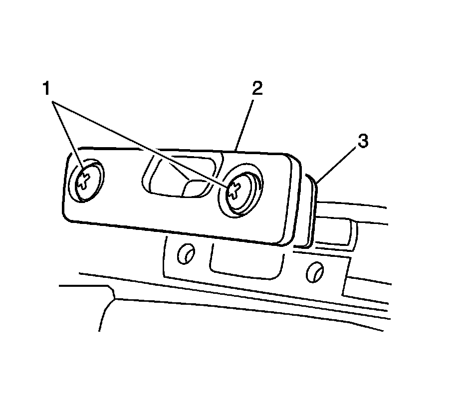 8. Remove the locating pin receiver (2) from the windshield header.