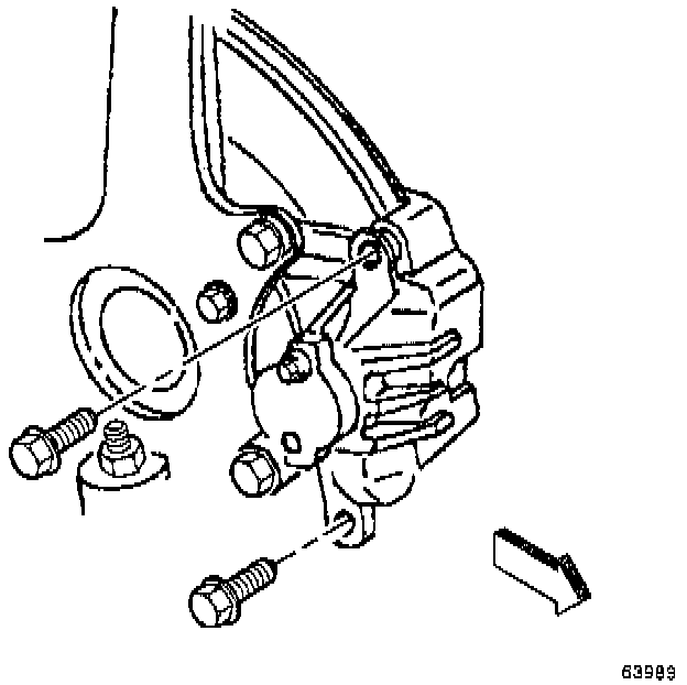 Caution: Support the brake caliper with heavy mechanic wire, or equivalent, whenever it is separated from its mount and the hydraulic flexible brake hose is still connected. Failure to support the caliper in this manner will cause the flexible brake hose to bear the weight of the caliper, which may cause damage to the brake hose and in turn may cause a brake fluid leak.