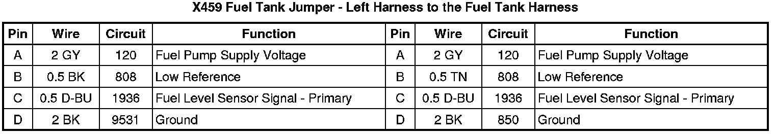 X459 Fuel Tank Jumper - Left Harness to the Fuel Tank Harness