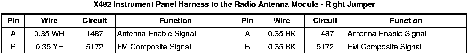 X482 Instrument Panel Harness to the Radio Antenna Module - Right Jumper
