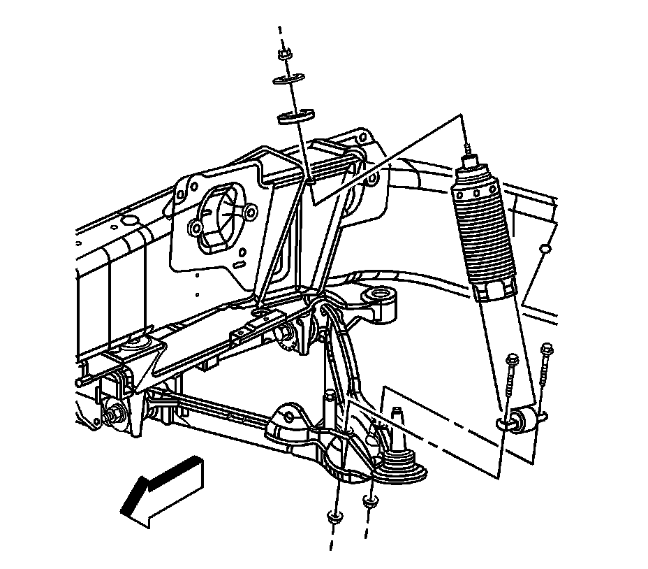27. Install the shock absorber lower mounting bolts. Refer to Shock Absorber Replacement (With F55) (Shock Absorber Replacement (With F55)).
