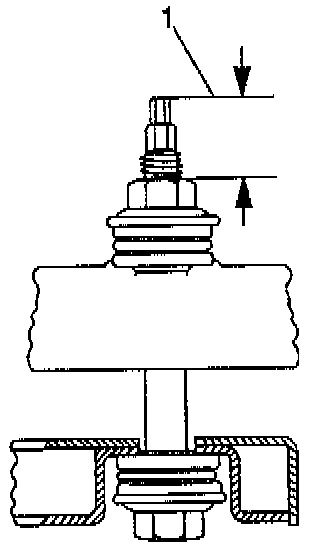 4. Measure the rear spring stud heights (1), the maximum difference should be 5 mm (0.196 in).