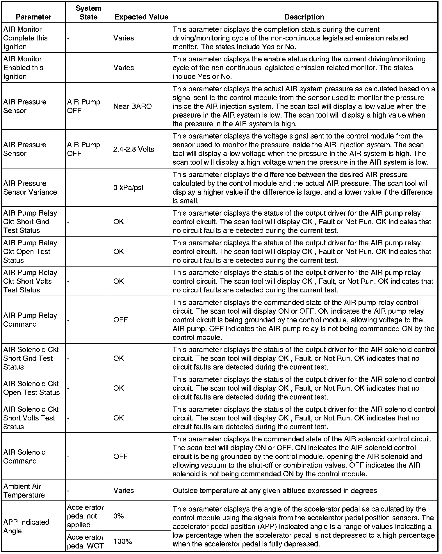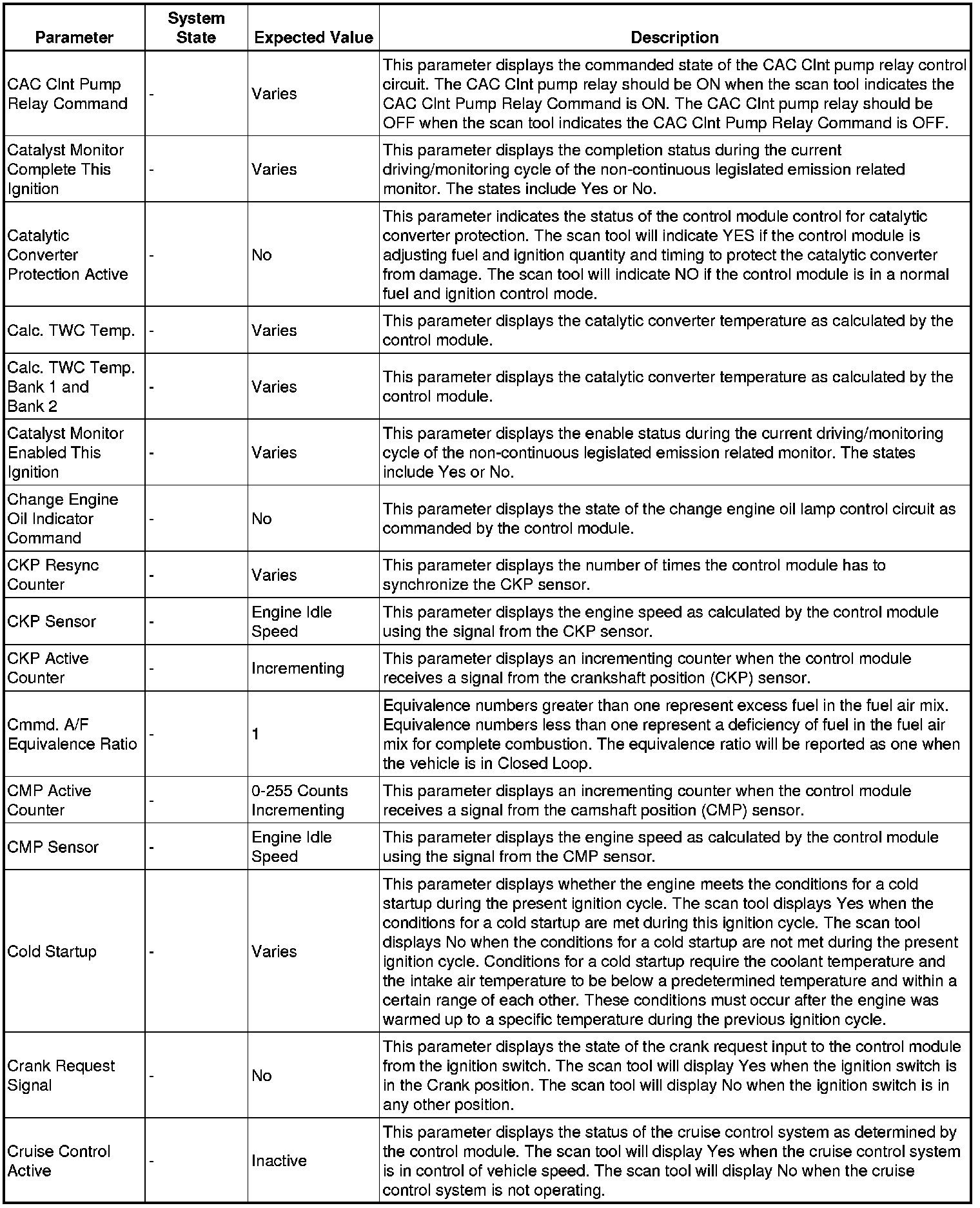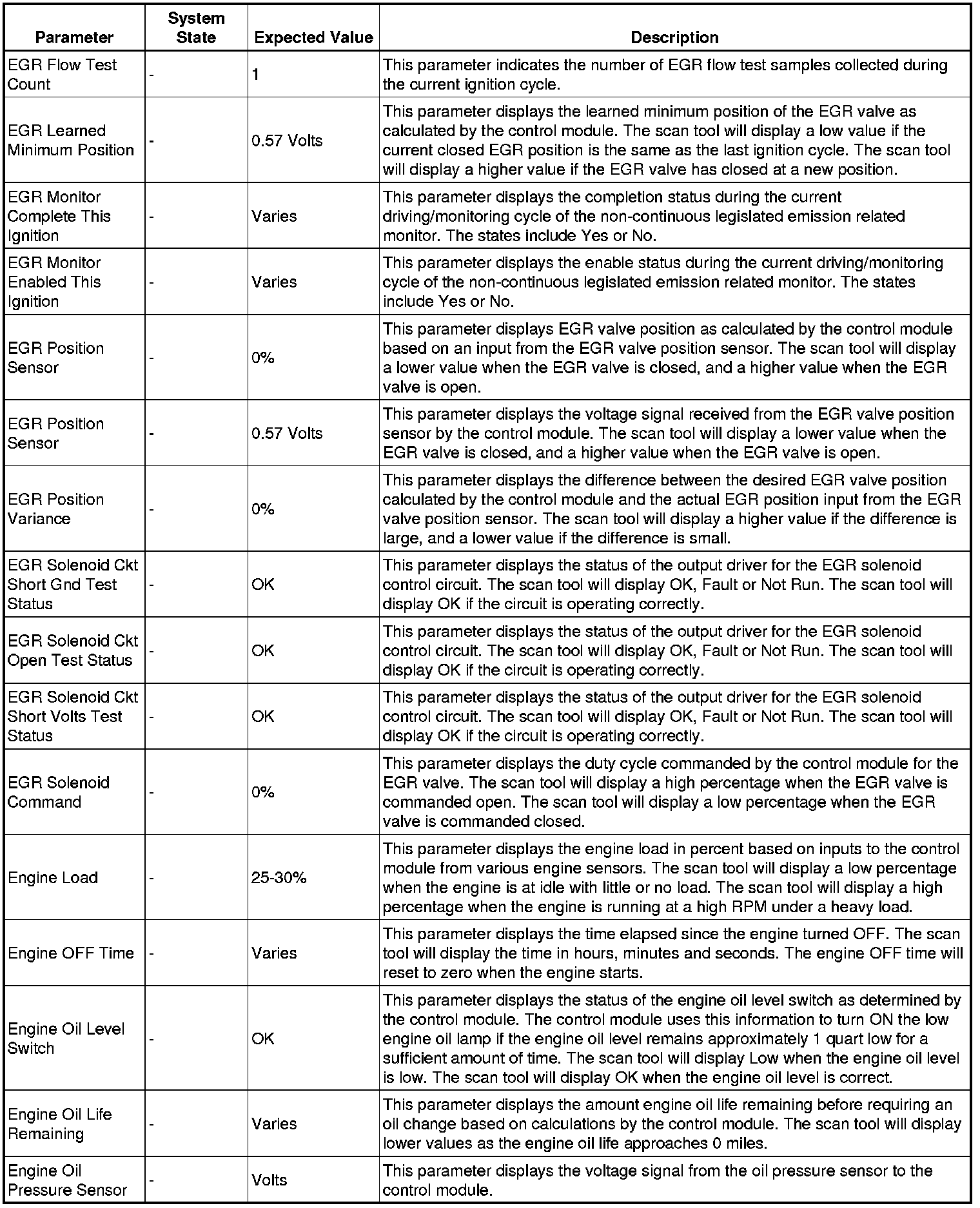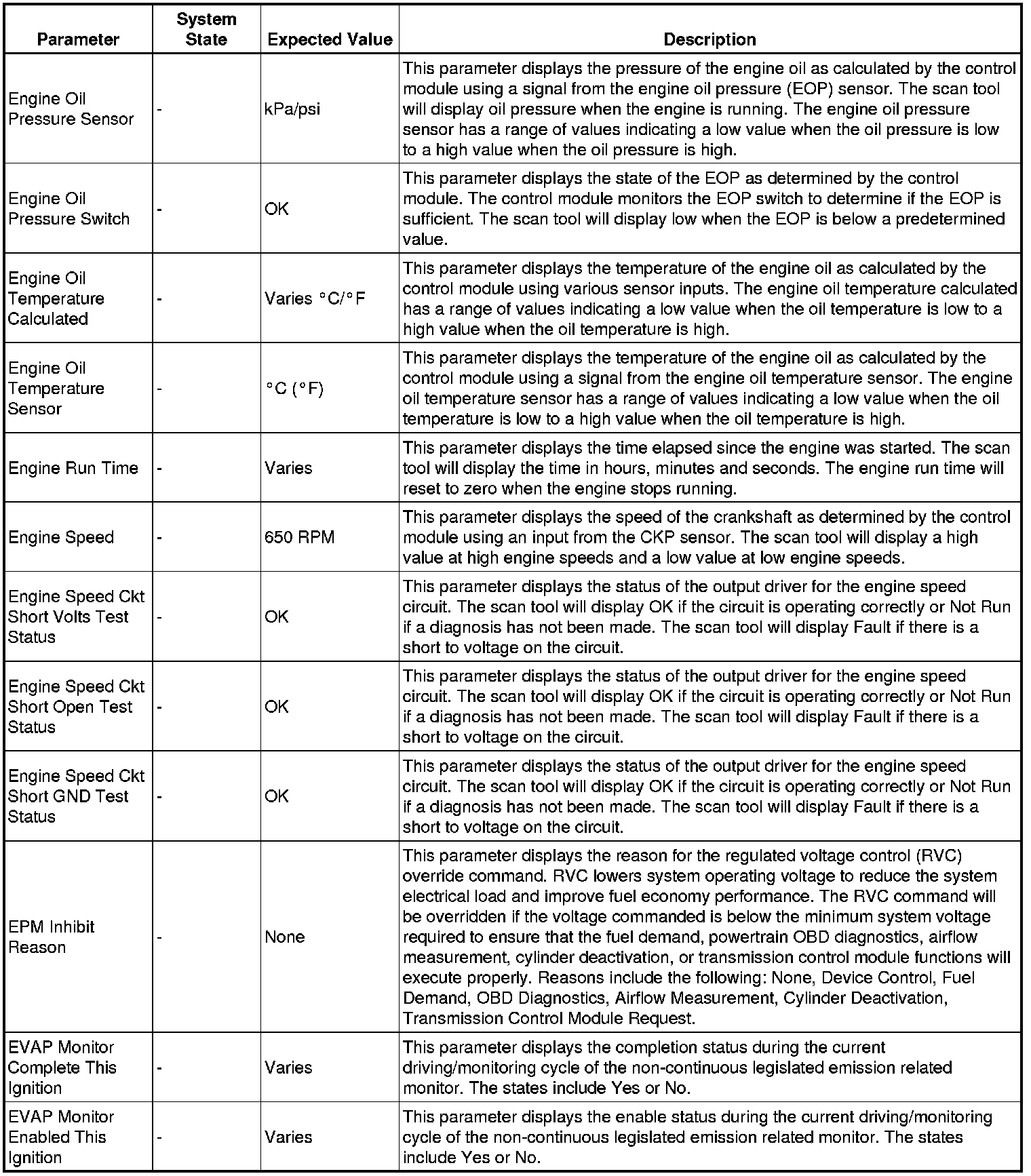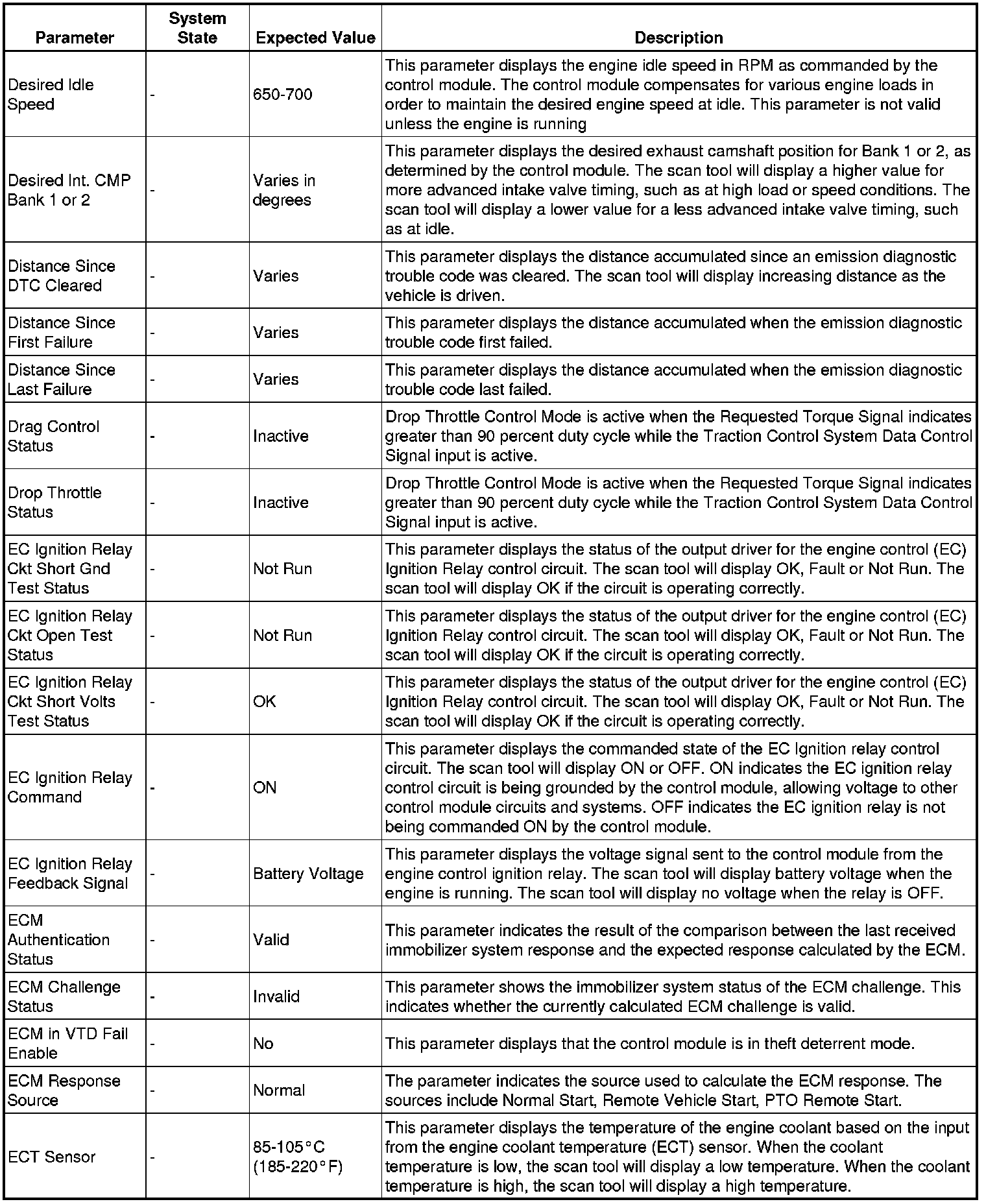 The Engine Control Module Scan Tool Data List contains all engine-related parameters that are available on the scan tool. The list is arranged in alphabetical order. A given parameter may appear in any one of the data lists, and in some cases may appear more than once, or in more than one data list in order to group certain related parameters together.