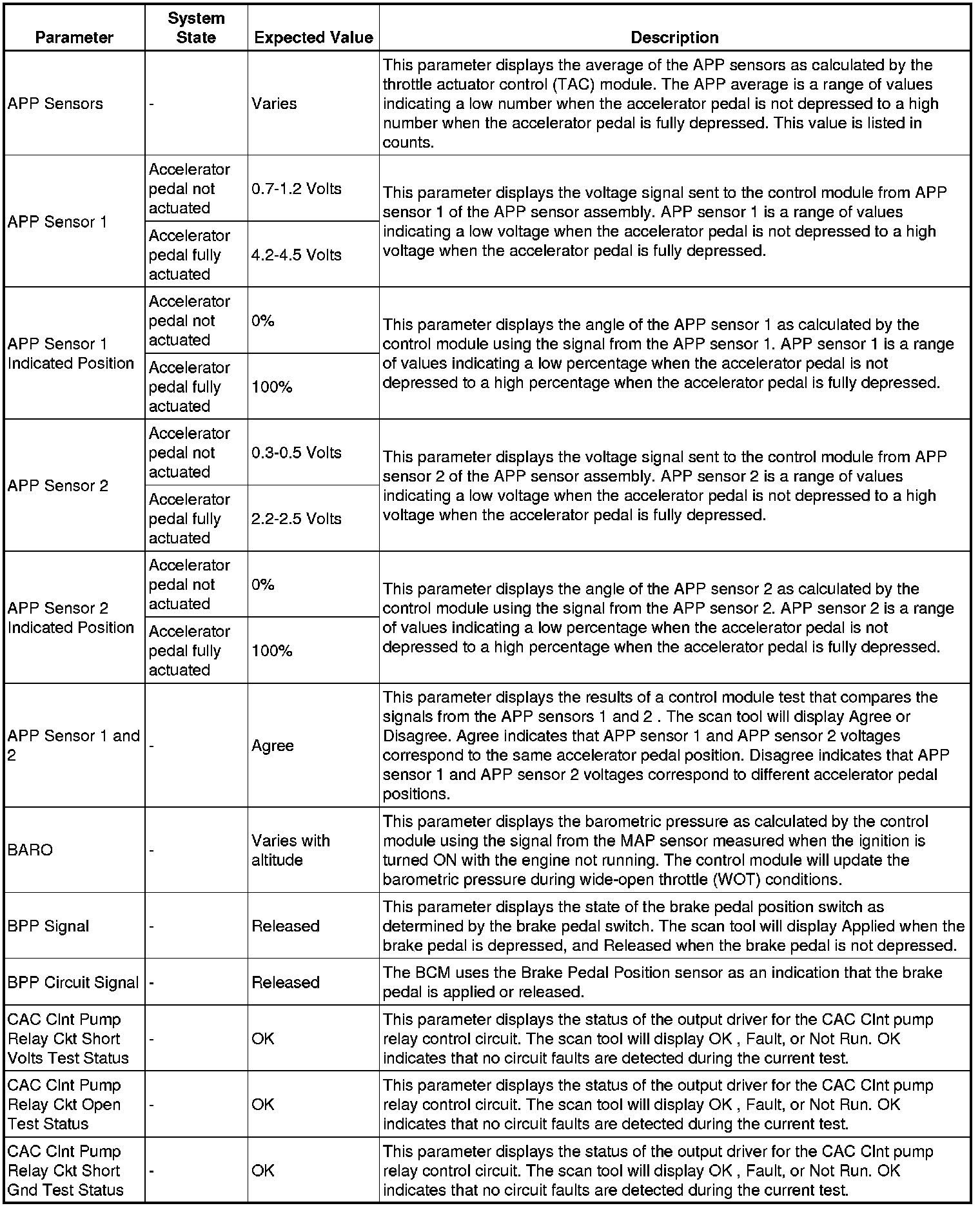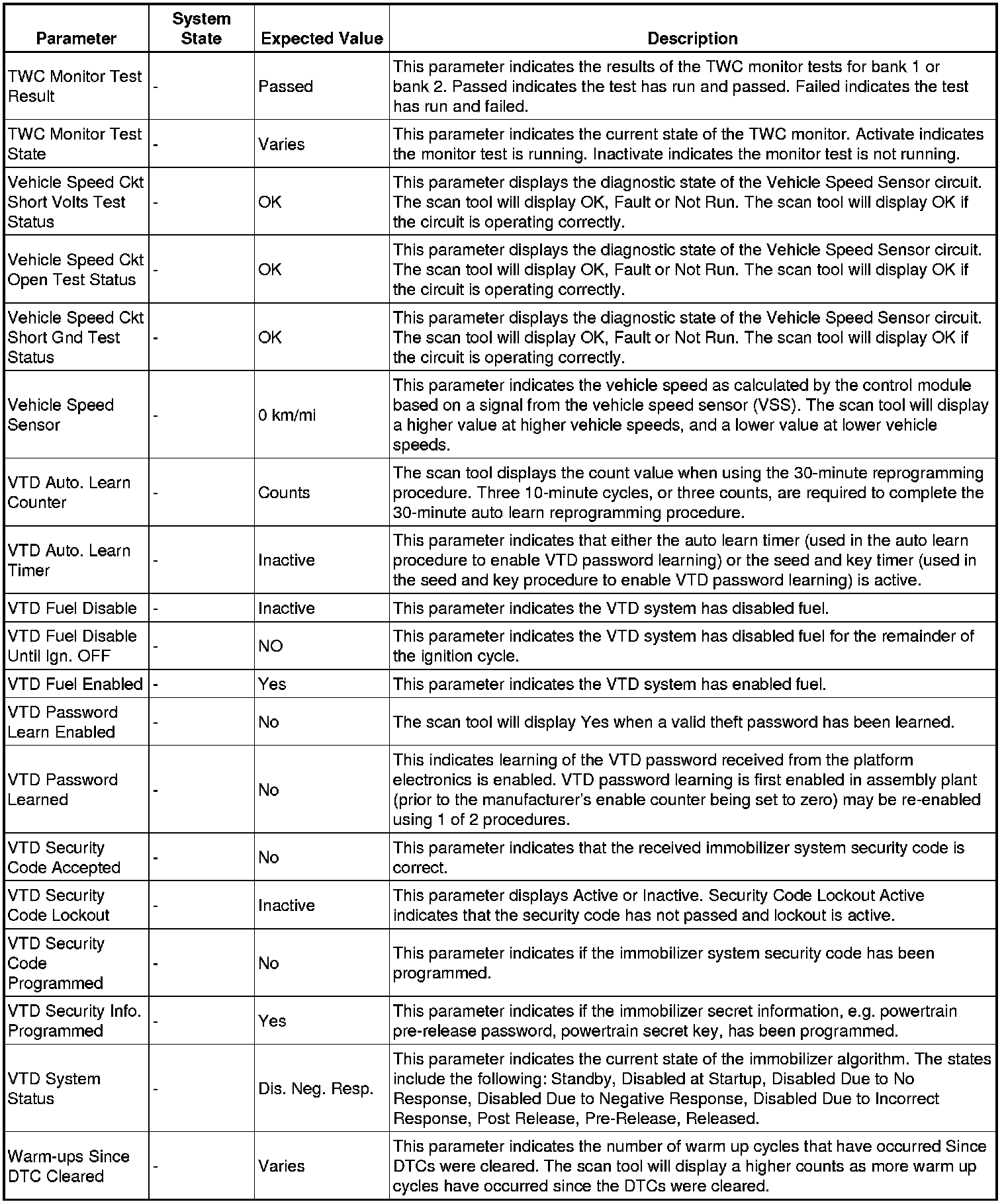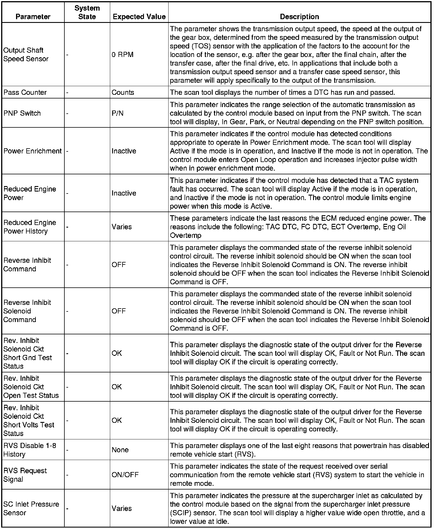 Only the parameters listed below are referenced in this service procedure for use in diagnosis.
