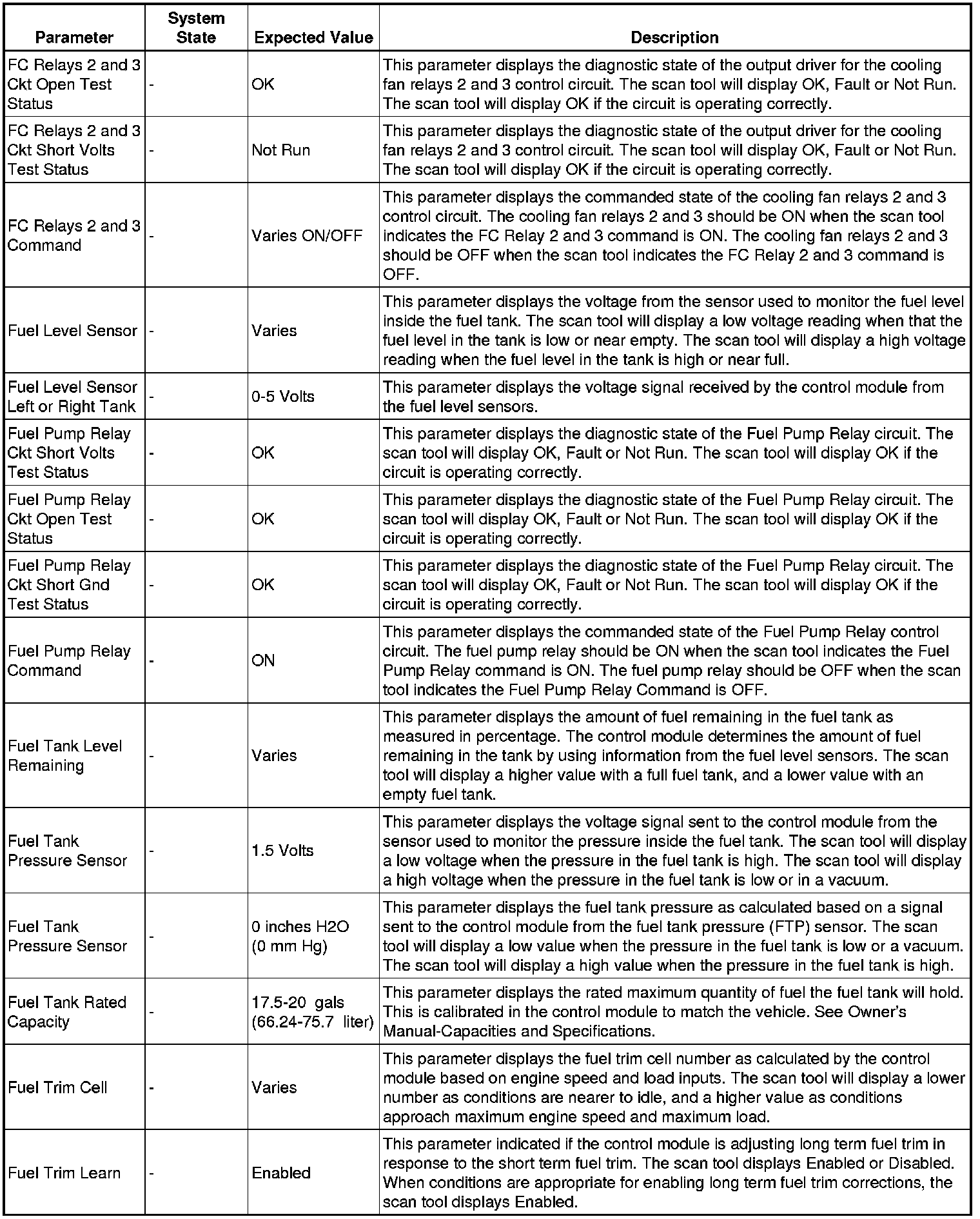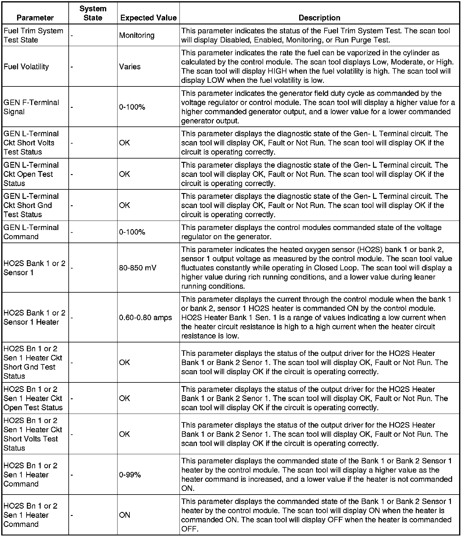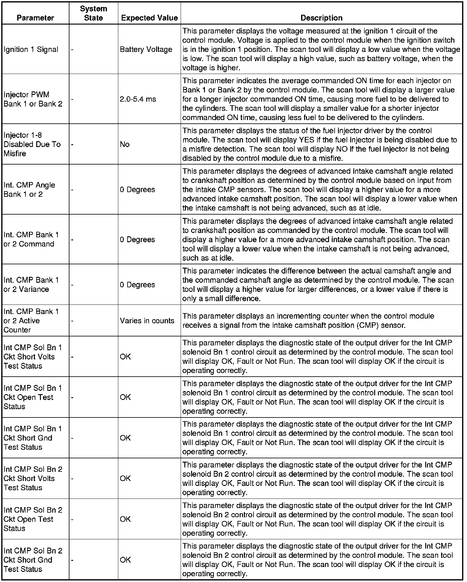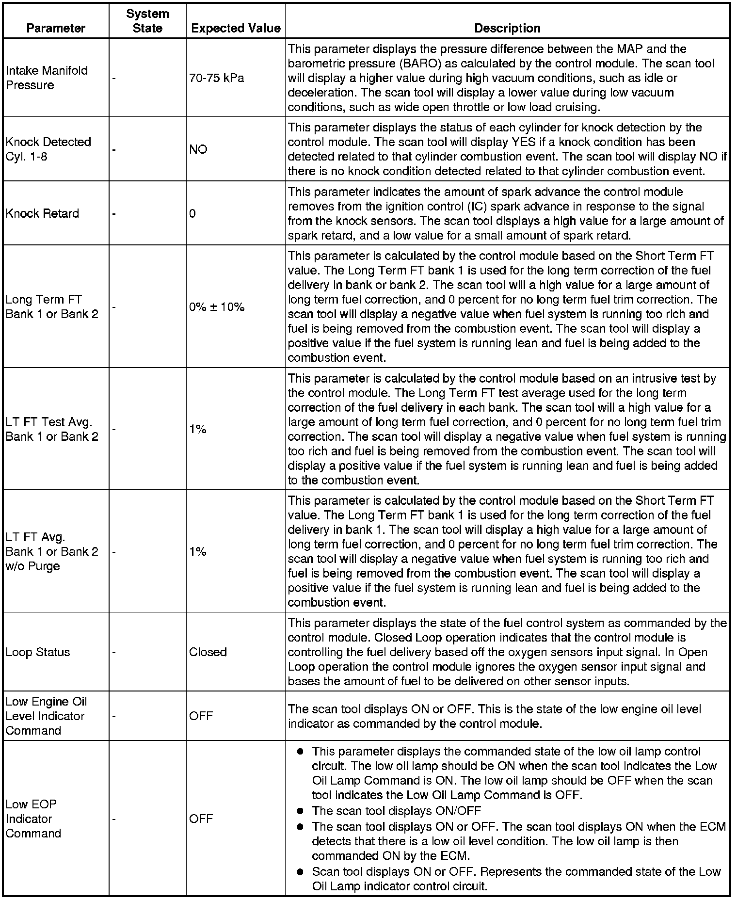 The scan tool values from a properly running engine may be used for comparison with the engine you are diagnosing. The engine scan tool data list represents values that would be seen on a normally running engine.