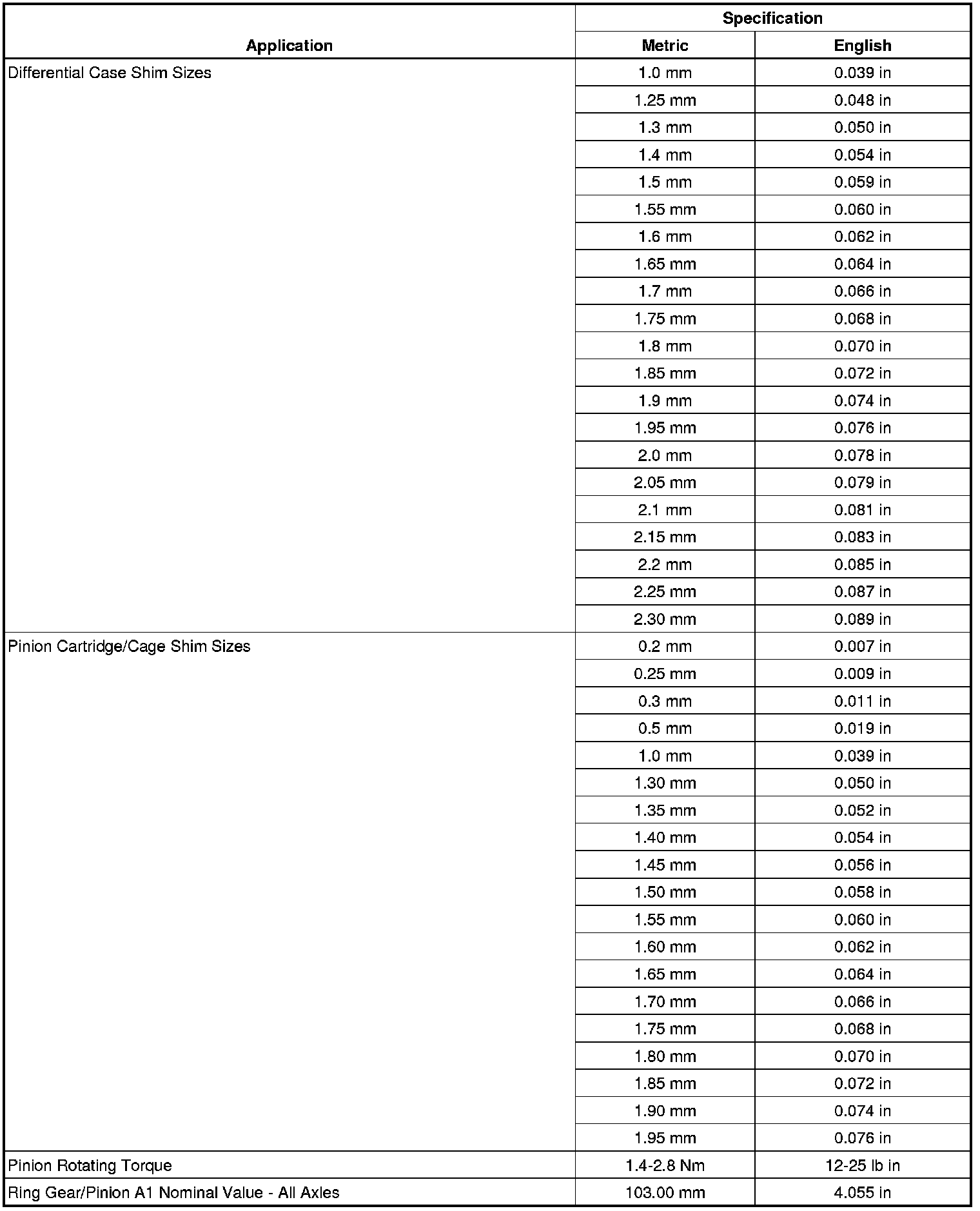 Rear Axle Specifications