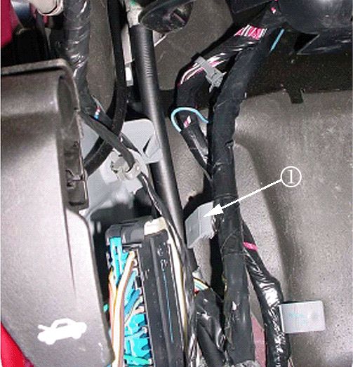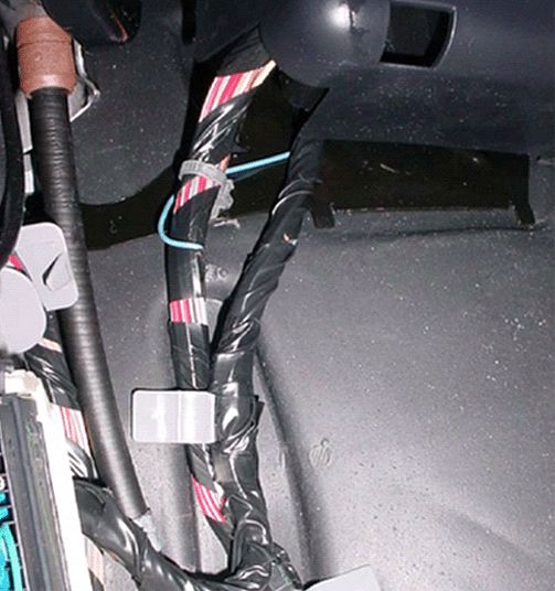 6. Secure the harness by seating the grey offset retaining clip to the dashmat (or brown "buddy clip" if present - usually on SUV's only). Reconnect C202.