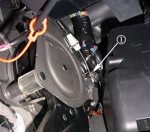 - When releasing the park brake pedal, the moving part (1) at the end of the park brake release cable may be coming into hard contact with the IP harness.