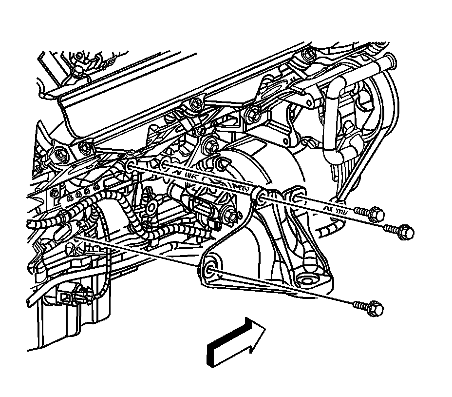 Note: It is necessary to elevate the engine assembly slightly to allow clearance for the RH engine mount bracket removal.