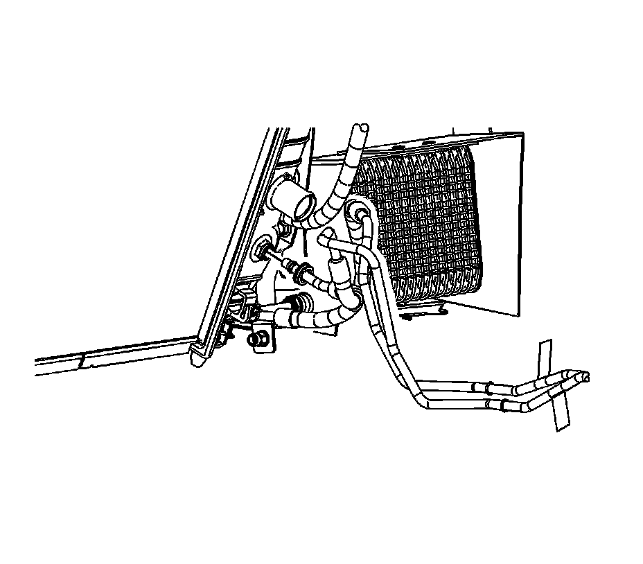 23. Install the lower TOC line to the radiator. Refer to Transmission Fluid Cooler Hose/Pipe Quick-Connect Fitting Disconnection and Connection (Service and Repair).