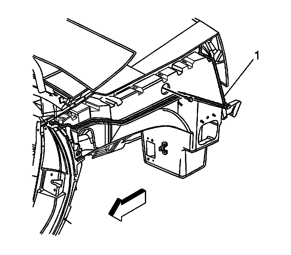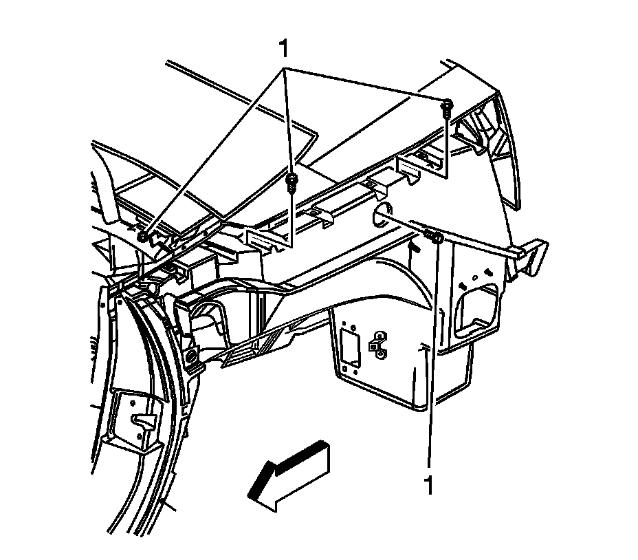 3.Apply a consistent bead of structural adhesive (1) 10 mm (3/8 in) in diameter to the rear structure to mate with the rear compartment frame. Refer to Sheet Molded Compound (SMC) Panel Bonding .