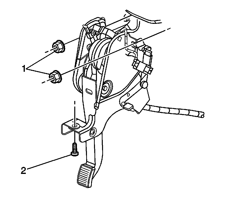 4. Install the park brake pedal assembly retaining nuts and bolt and tighten to 10 Nm (89 lb in).