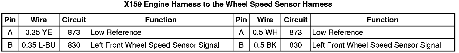 X159 Engine Harness to the Wheel Speed Sensor Harness