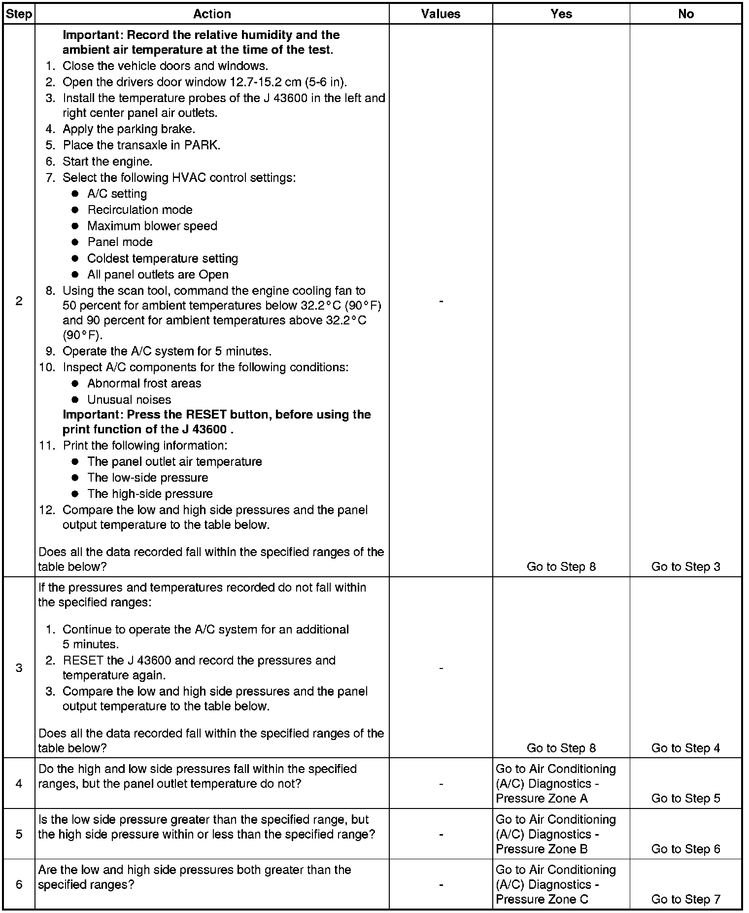 1. This step determines if the A/C system has at least the minimum refrigerant charge required to operate the system without damage.