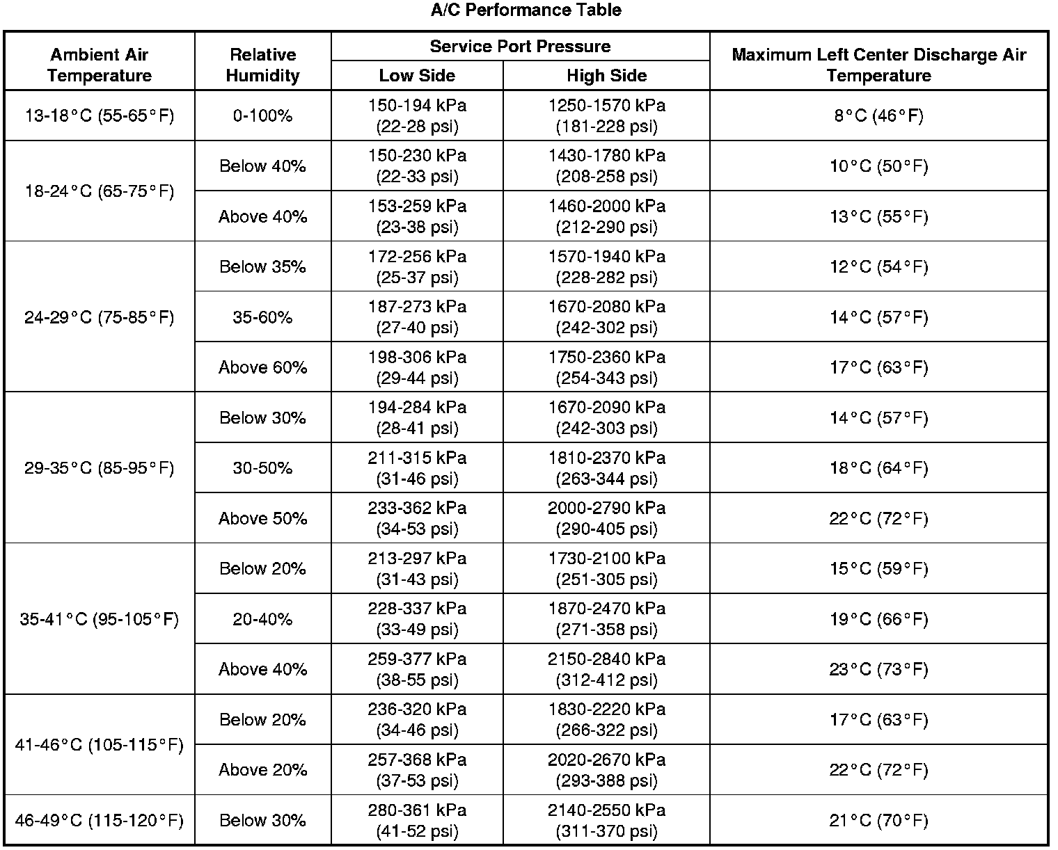 Air Conditioning (A/C) System Performance Test (4.6L)