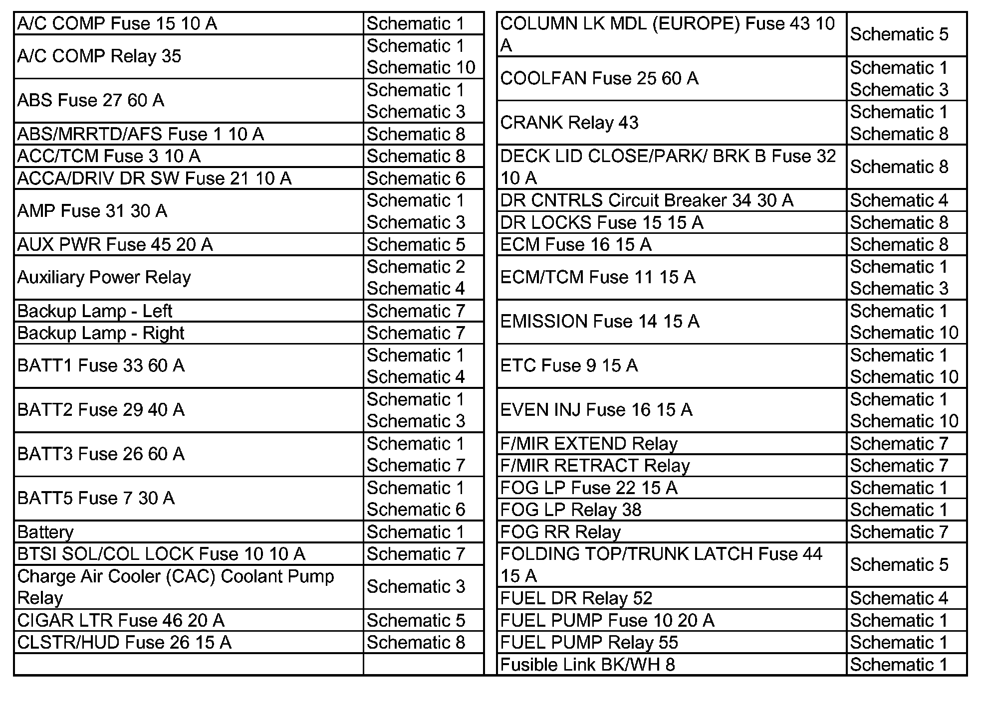A/C Comp Fuse 15 10 A - Fusible Link BK/WH 8: