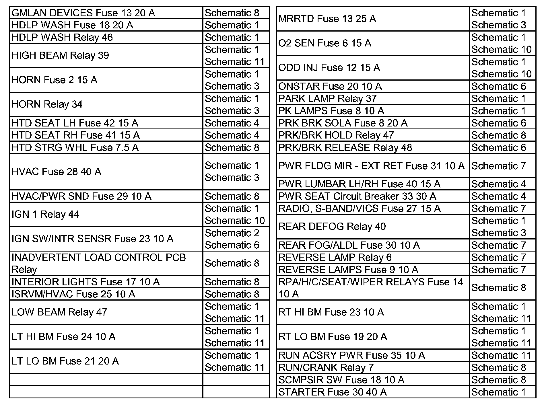 GMLAN Devices Fuse 13 20 A - Starter Fuse 30 40 A: