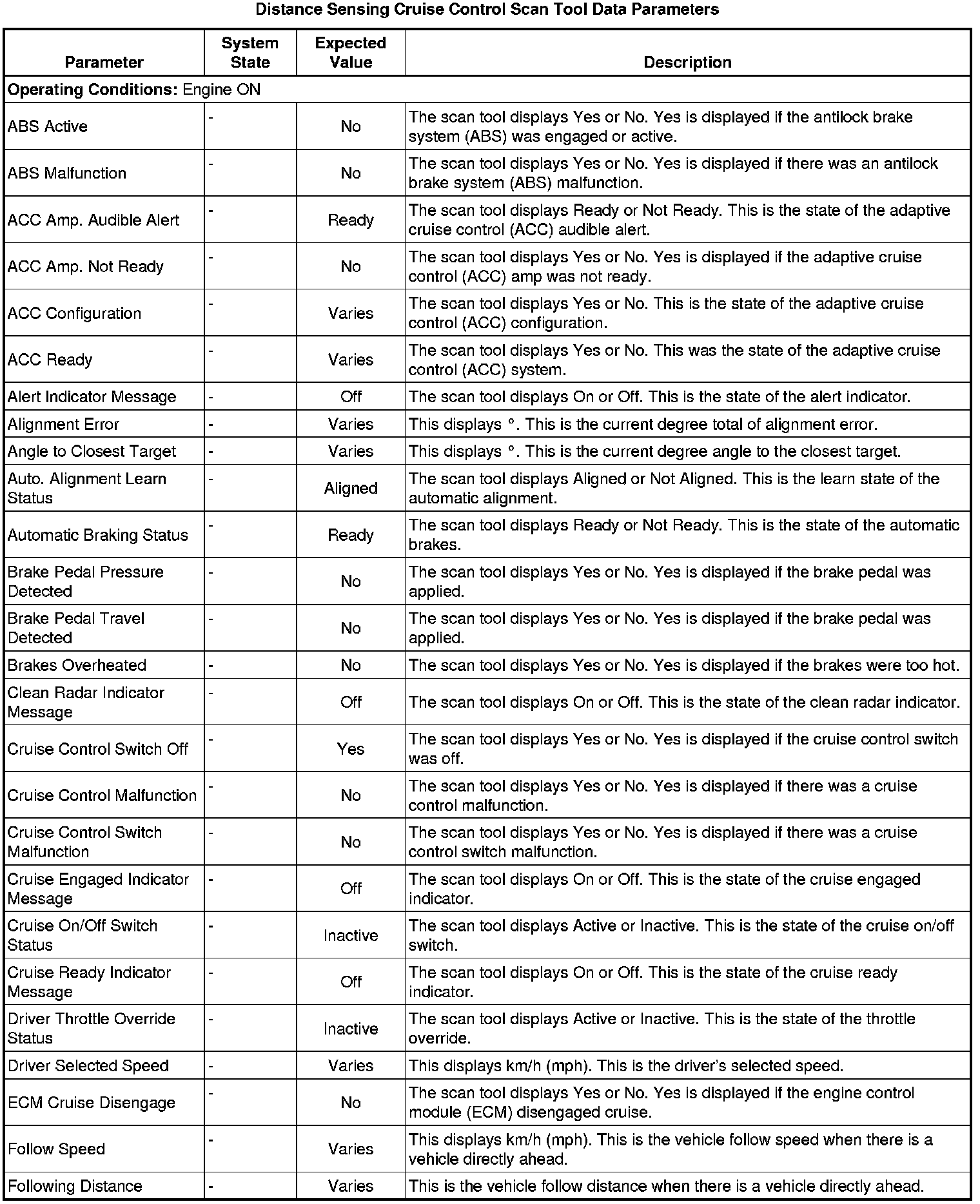 Cruise Control Module with Distance Sensing Scan Tool Information