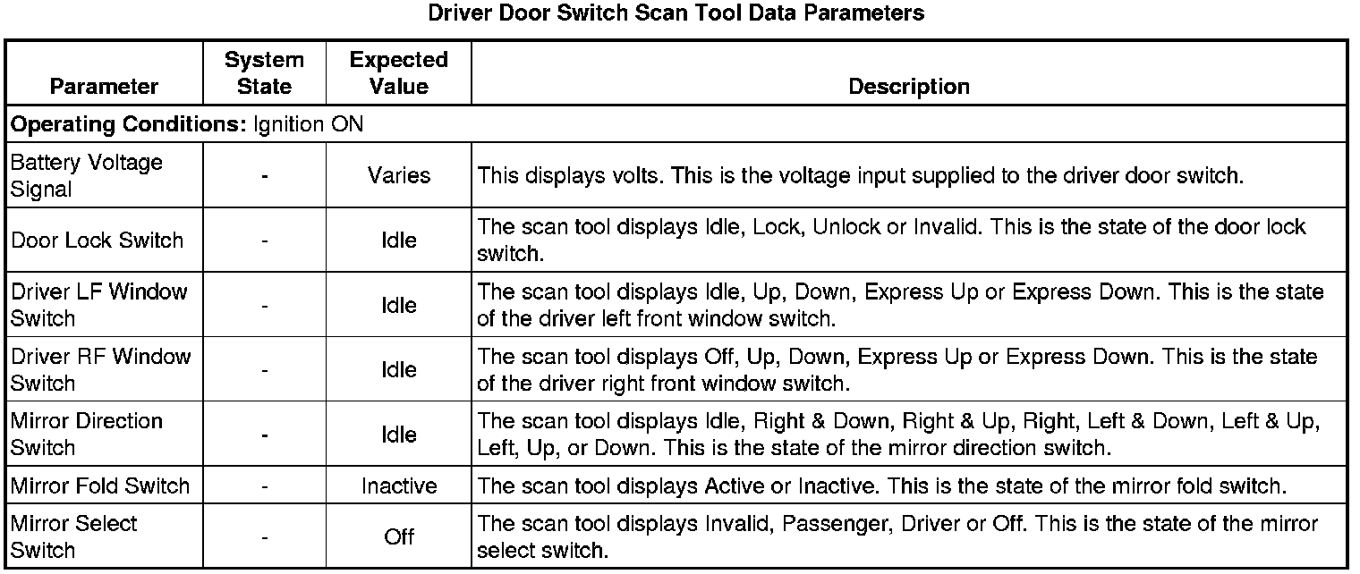 Door Lock Control Module Scan Tool Information (Driver Door Switch)
