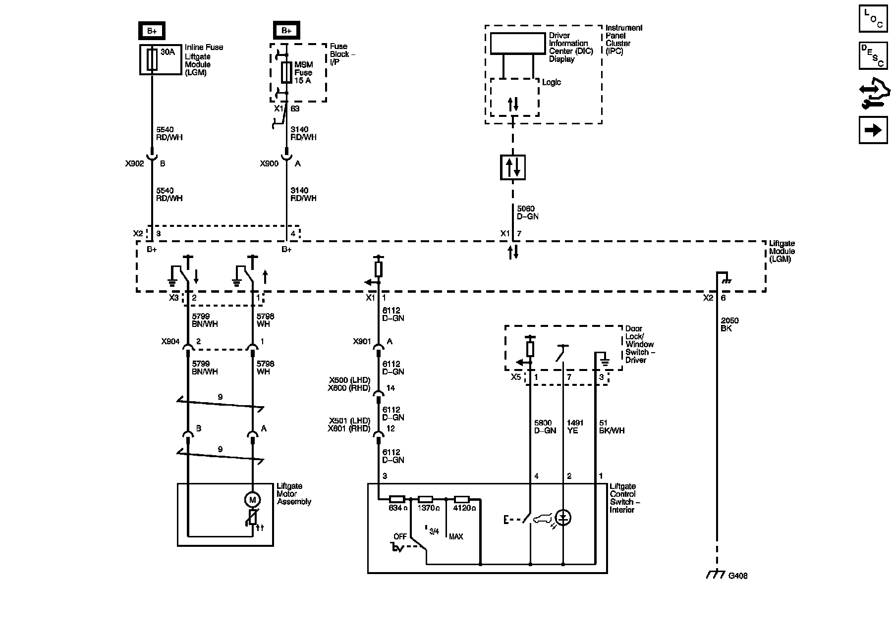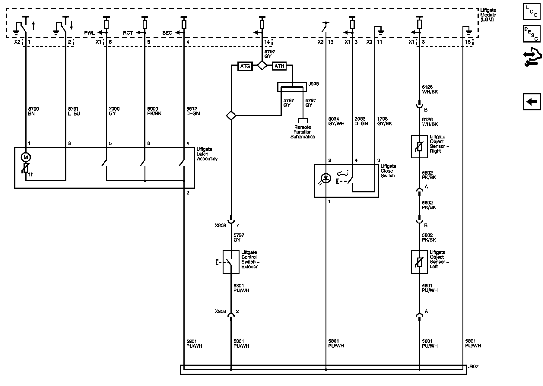 Module Power, Ground, Data Communication, Control Switch, and Liftgate Motor