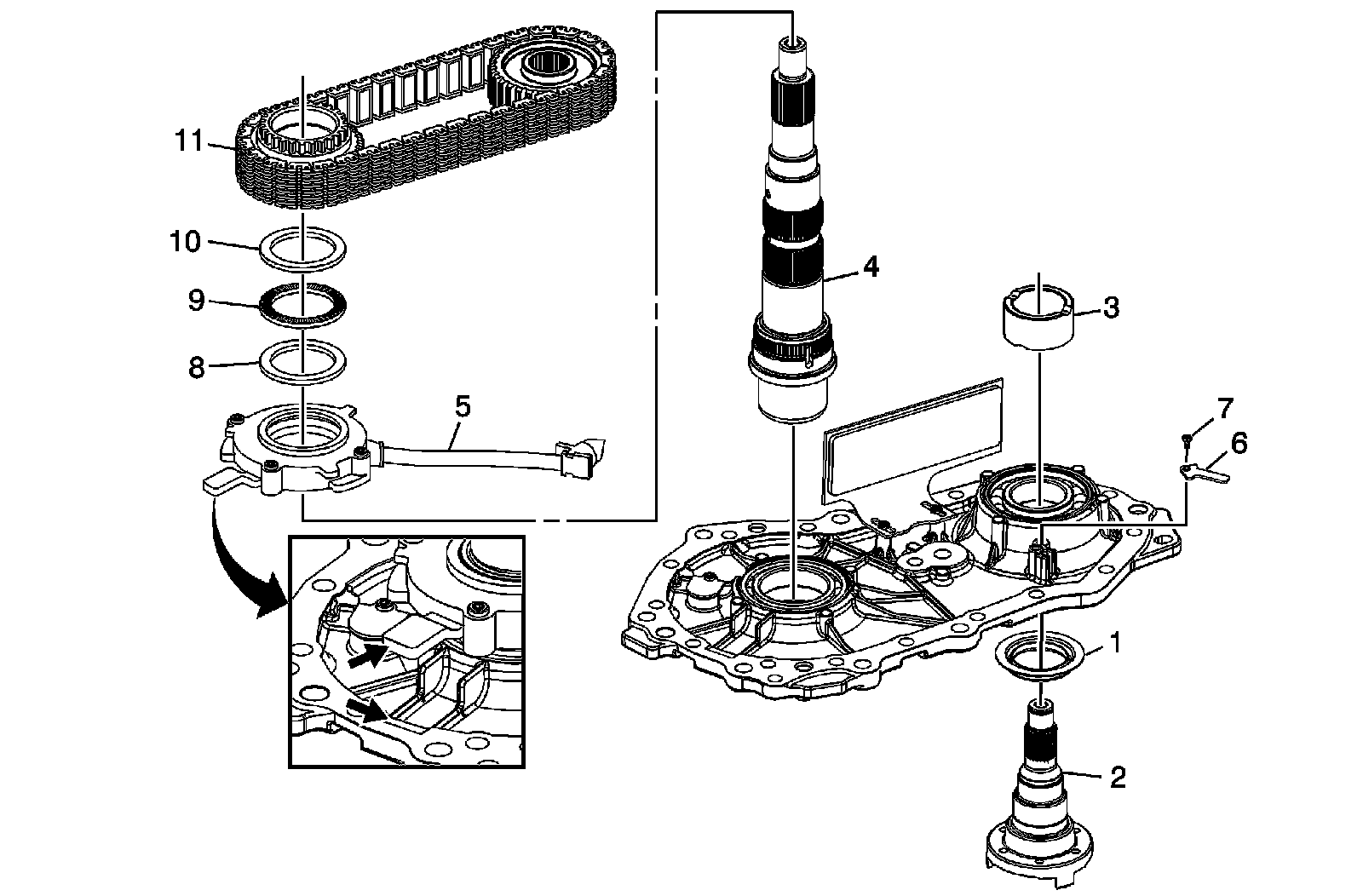 Chain, Sprockets, Oil Pump, Input Shaft, and Front Output Shaft Installation
