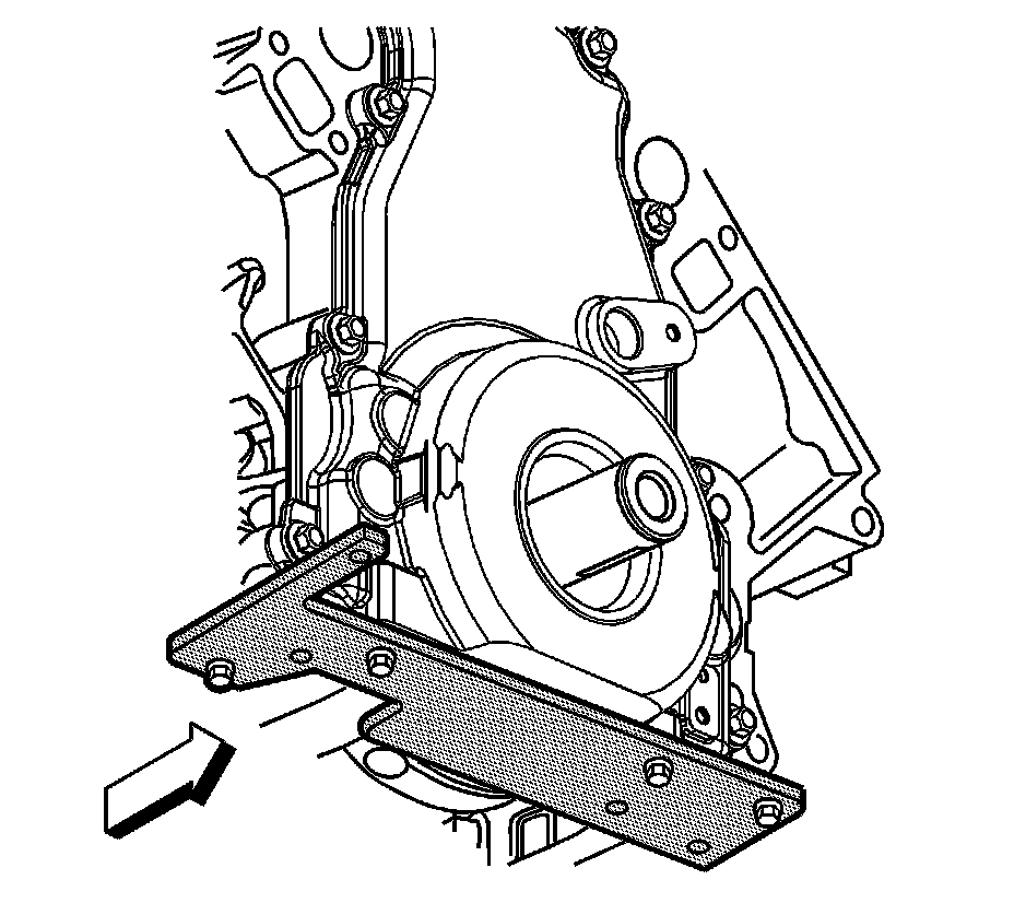 4. Install the J 41480 - cover alignment and tighten the tool-to-engine block bolts to 25 Nm (18 lb ft).