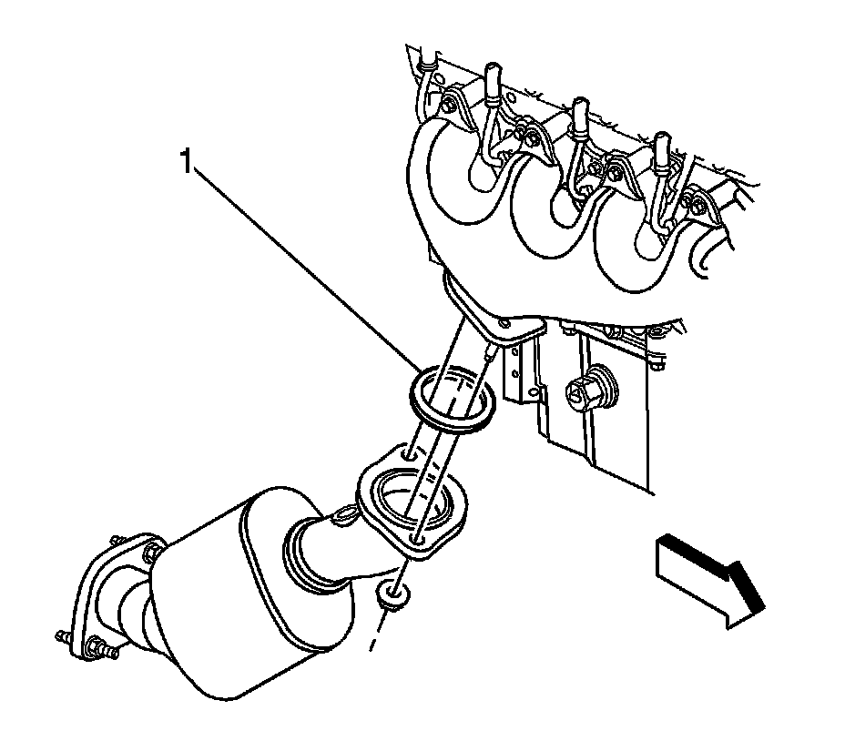 2. Install the catalytic converter gasket (1) to the catalytic converter.
