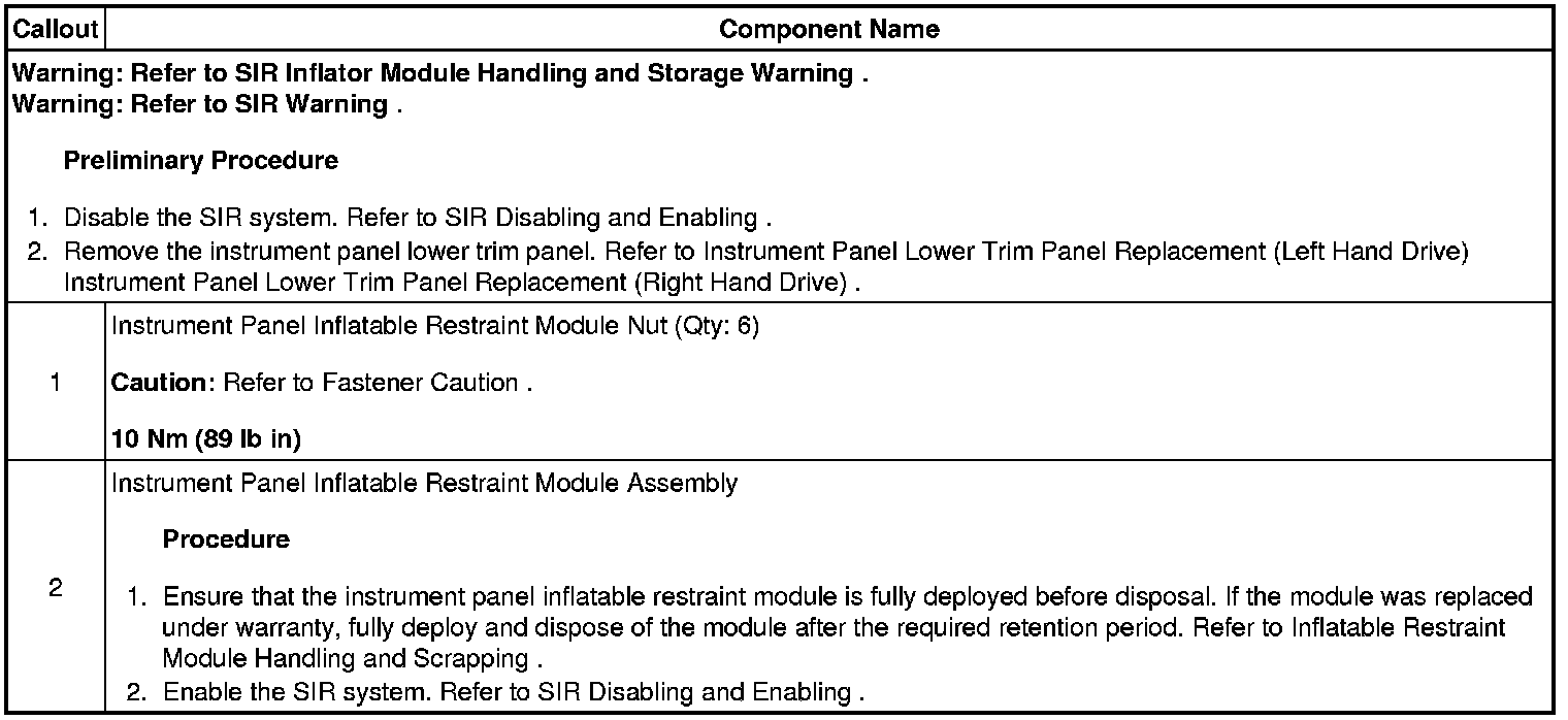 Instrument Panel Inflatable Restraint Module Replacement