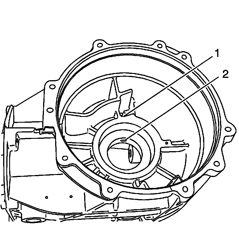 3. Clean the oil passage between (1) and (2), in the axle bearing bore.