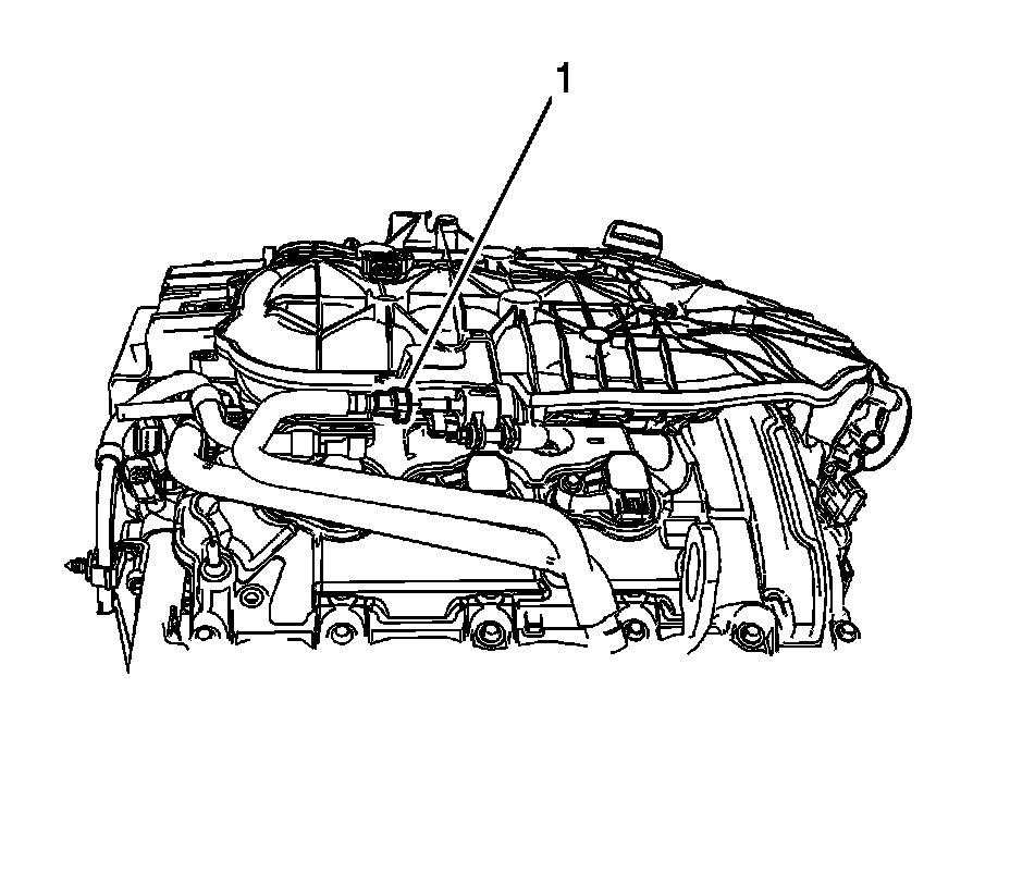 7. Connect the evaporative emission (EVAP) hose (1) to the EVAP solenoid.