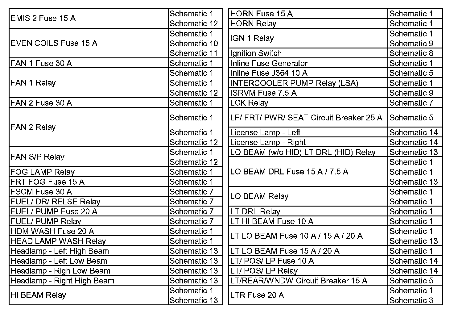 Wiring Schematic Index