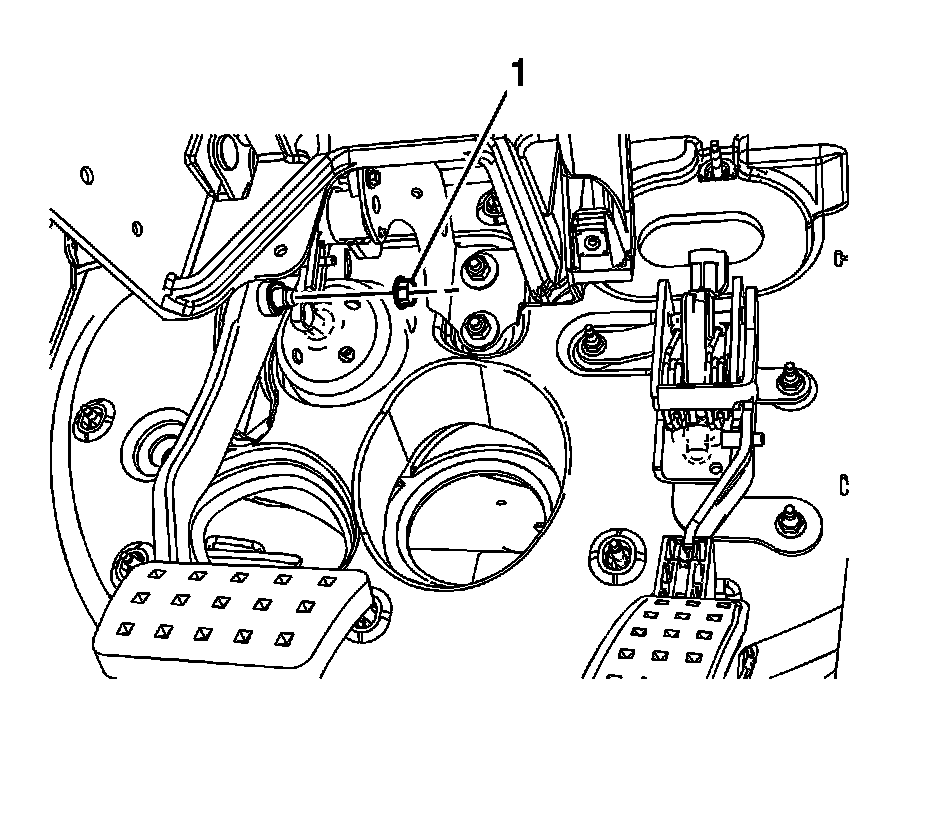 5. Remove the power vacuum brake booster pushrod nut (1).
