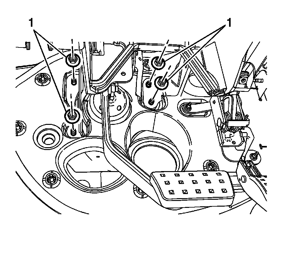 9. Remove the brake pedal bracket nuts (1).
