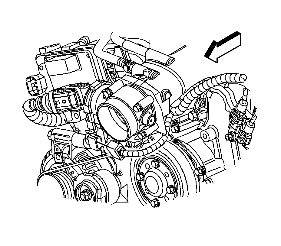 3. Remove the air outlet duct. Refer to Air Cleaner Outlet Duct Replacement (LF1) (Service and Repair)Air Cleaner Outlet Duct Replacement (LLT) (Service and Repair).