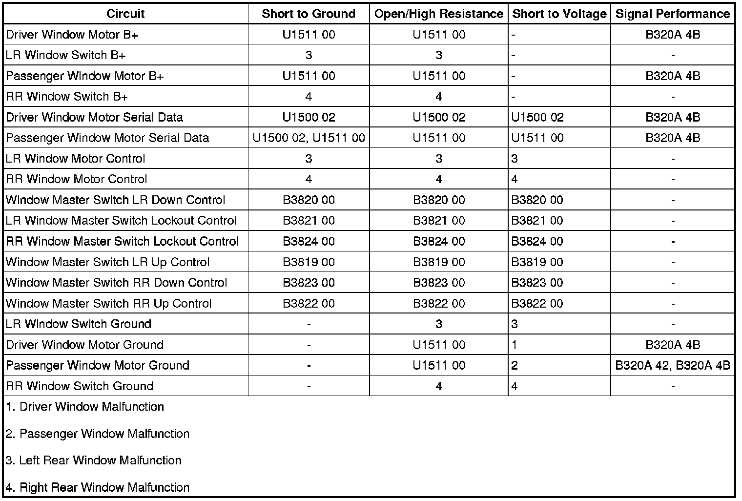 • If either rear passenger power window malfunctions, refer to Rear Passenger Window Malfunction.