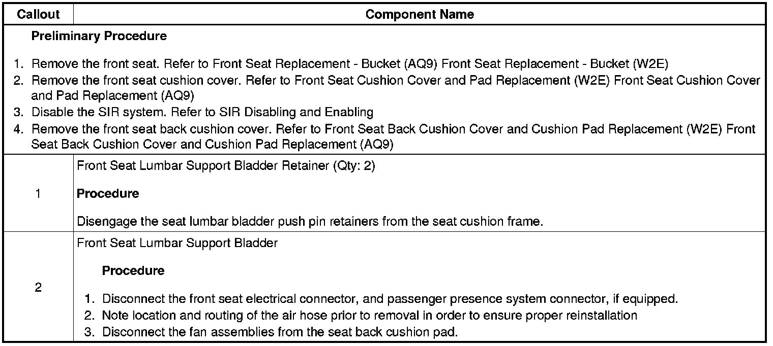Front Seat Lumbar Support Bladder Replacement (W2E)