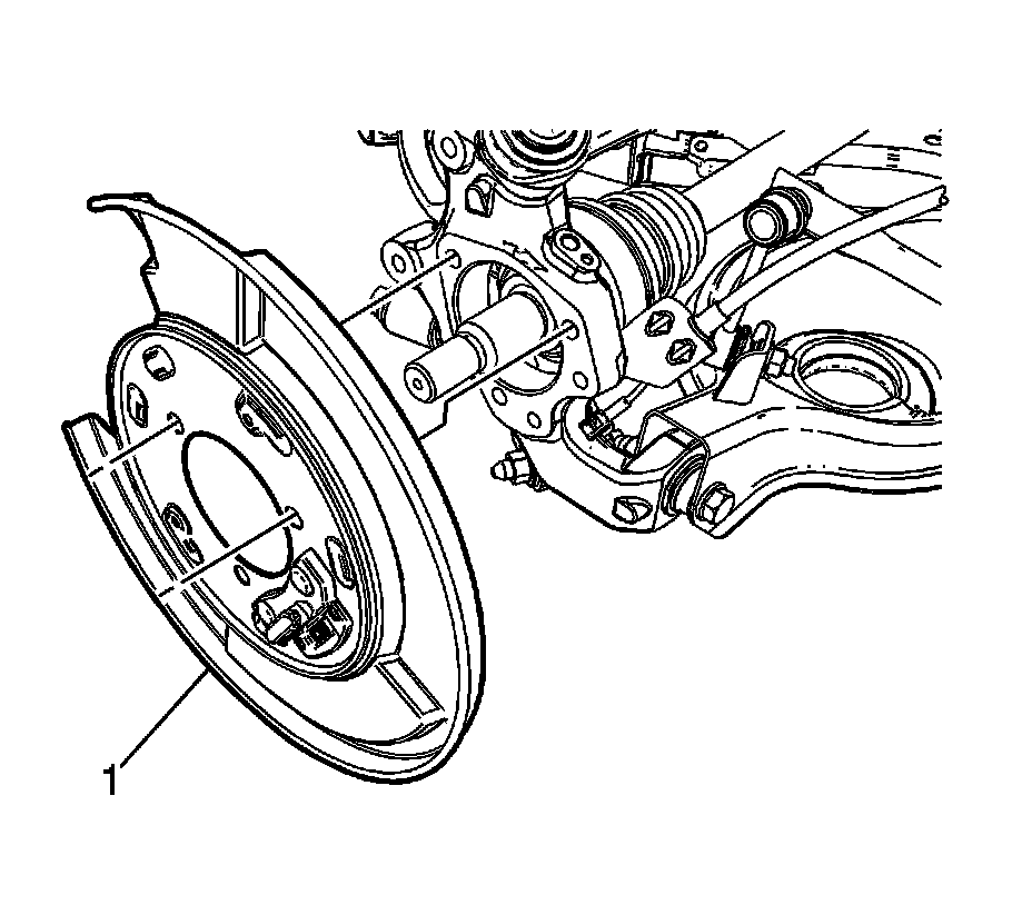 1. Install the parking brake backing plate (1).