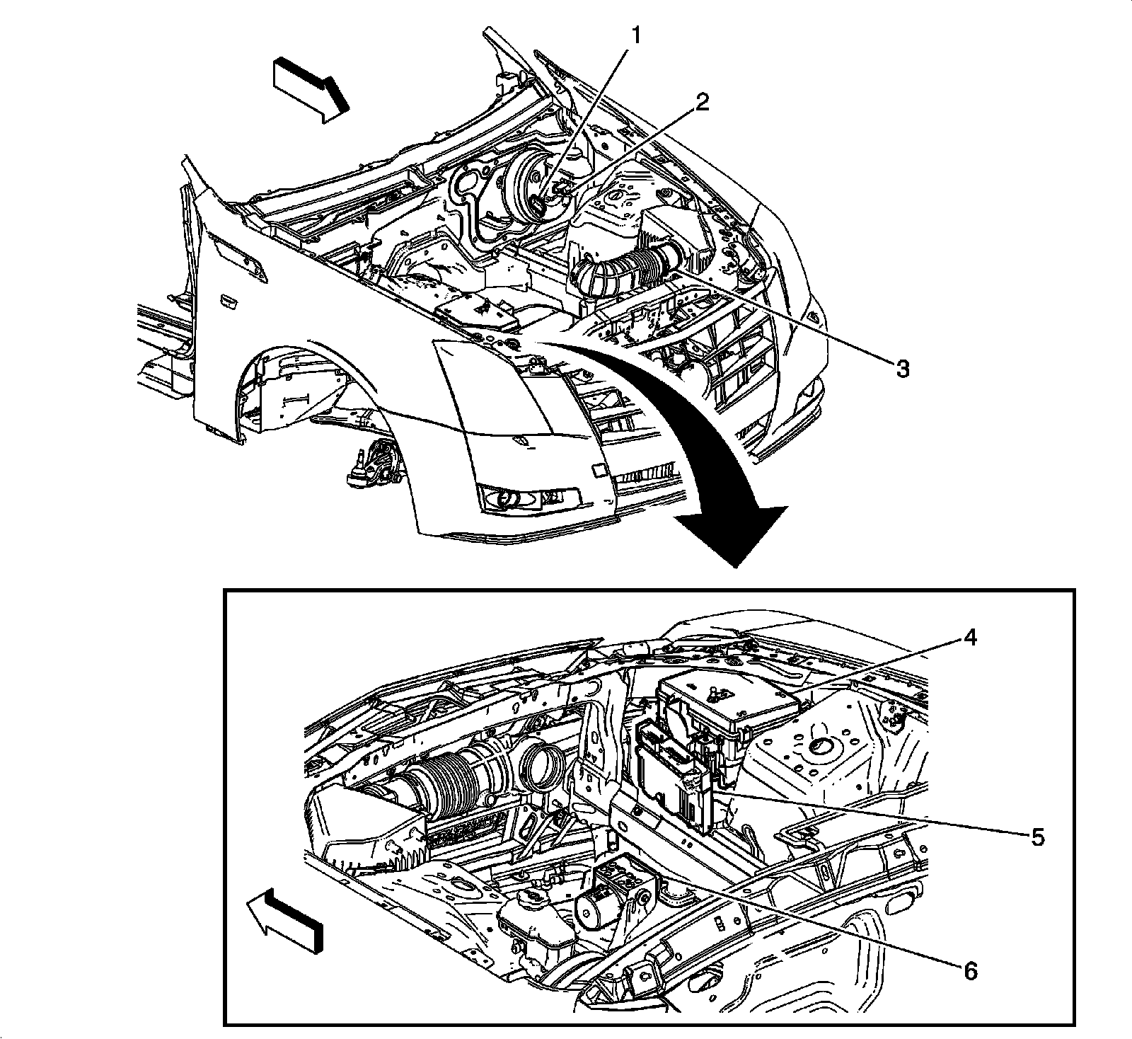Front of Vehicle/Engine Compartment Component Views