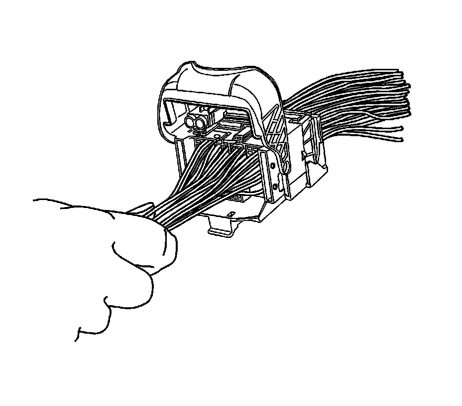 8. The female connector body may have an additional connector hooked to the edge of the body. Use terminal release tool J-38125-11A or equivalent to release the locking tab and slide the connector off the female body.